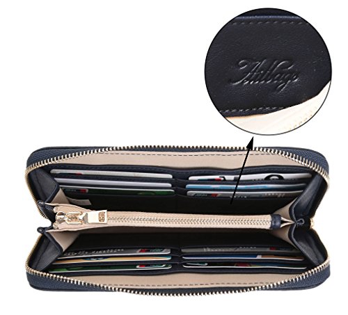-. Feature : MATERIAL - PU Leather and fabric lining in high quality, lightweight, smooth and durable / DIMENSION - (L)8.25 x (W)1 x (H)4.3 inches, as shown on the picture / STRUCTURE - 12 slip card holders, 3 slip pockets, 2 compartments,1 zip layer, metal Logo embossed / CAPACITY - Small and valualbe items like Cash, Cards, Receipts or tickets, Smartphone up to 5.5-inch (like iPhone 6 plus£¬ iPhone 7 plus) / OCCATION - Effective in all city occasions like Daily, Travel, Work Place , Dating, Shopping, Social Places. etc.