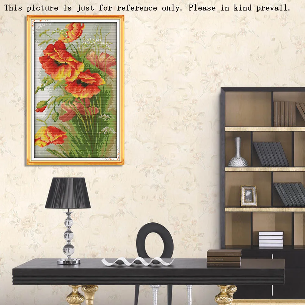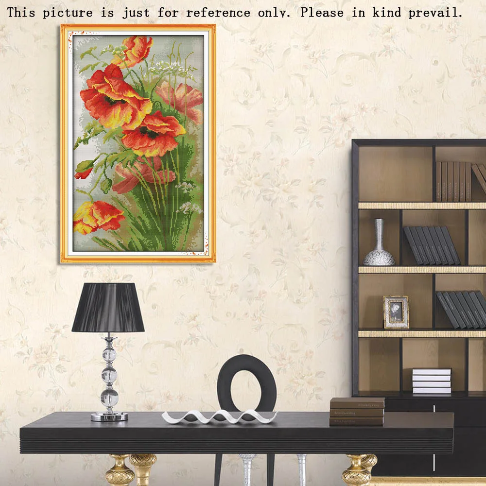 DIY Handmade Needlework Counted Cross Stitch Set Embroidery Kit 14CT Poppy Flowers Pattern Cross-Stitching Home Decoration