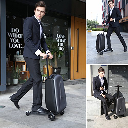 Time Saving and Convinent:Using your luggage bag as a scooter, our scooter luggage can save your time to school or tranfer in airport in the most ease way. Just push one button to control the scooter up or down.