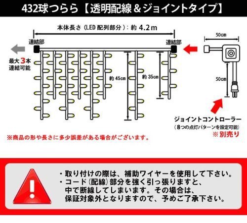 ■ Color: Champagne gold ■ Size: [Full length] Approximately 4.2 m (Vertical length of LED arrangement part: approx 35 cm, 45 cm) ■ Light emitting diode (LED ball) ■ Code: PVC ■ Power cord: ABS plastic ■ Power consumption: