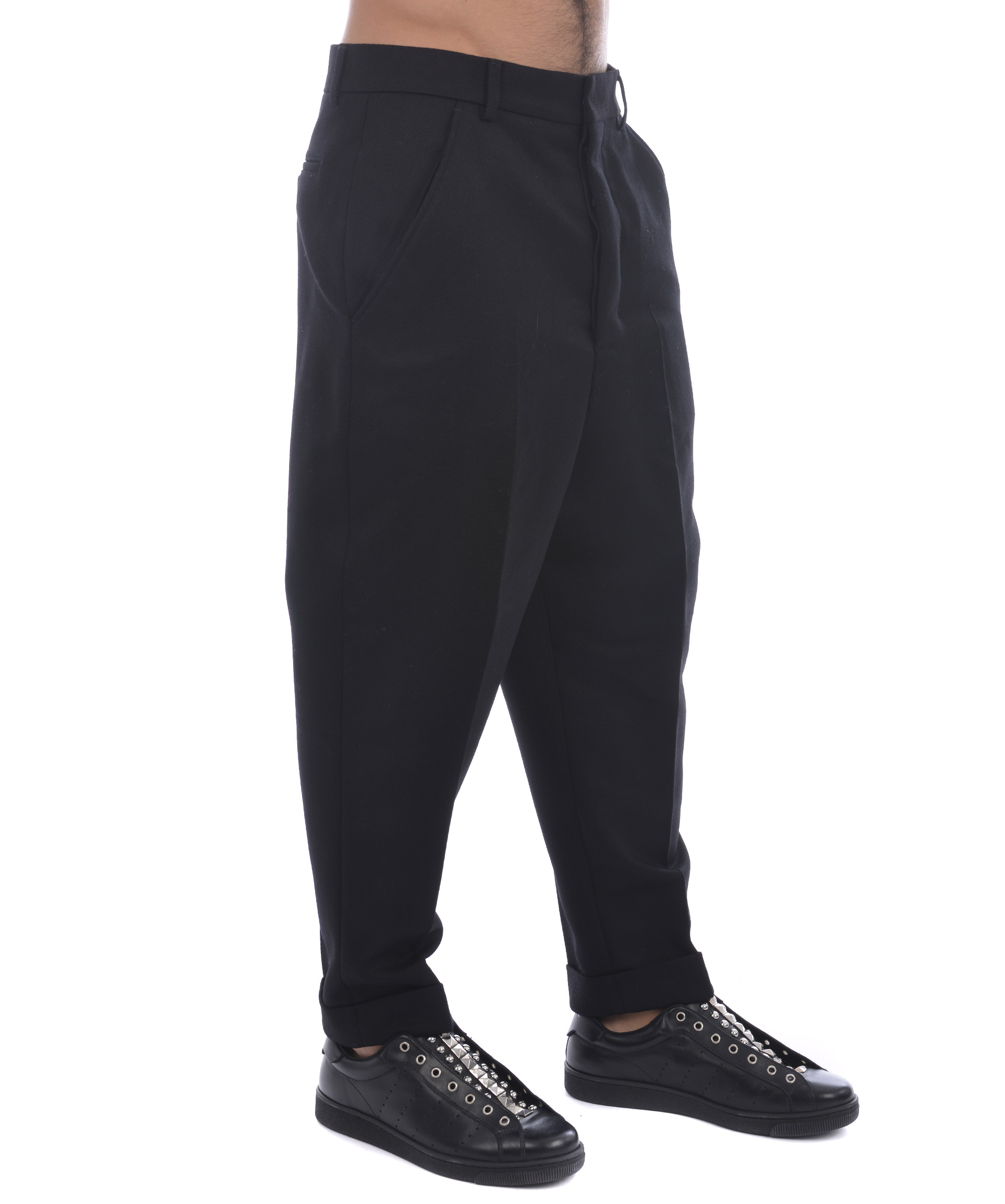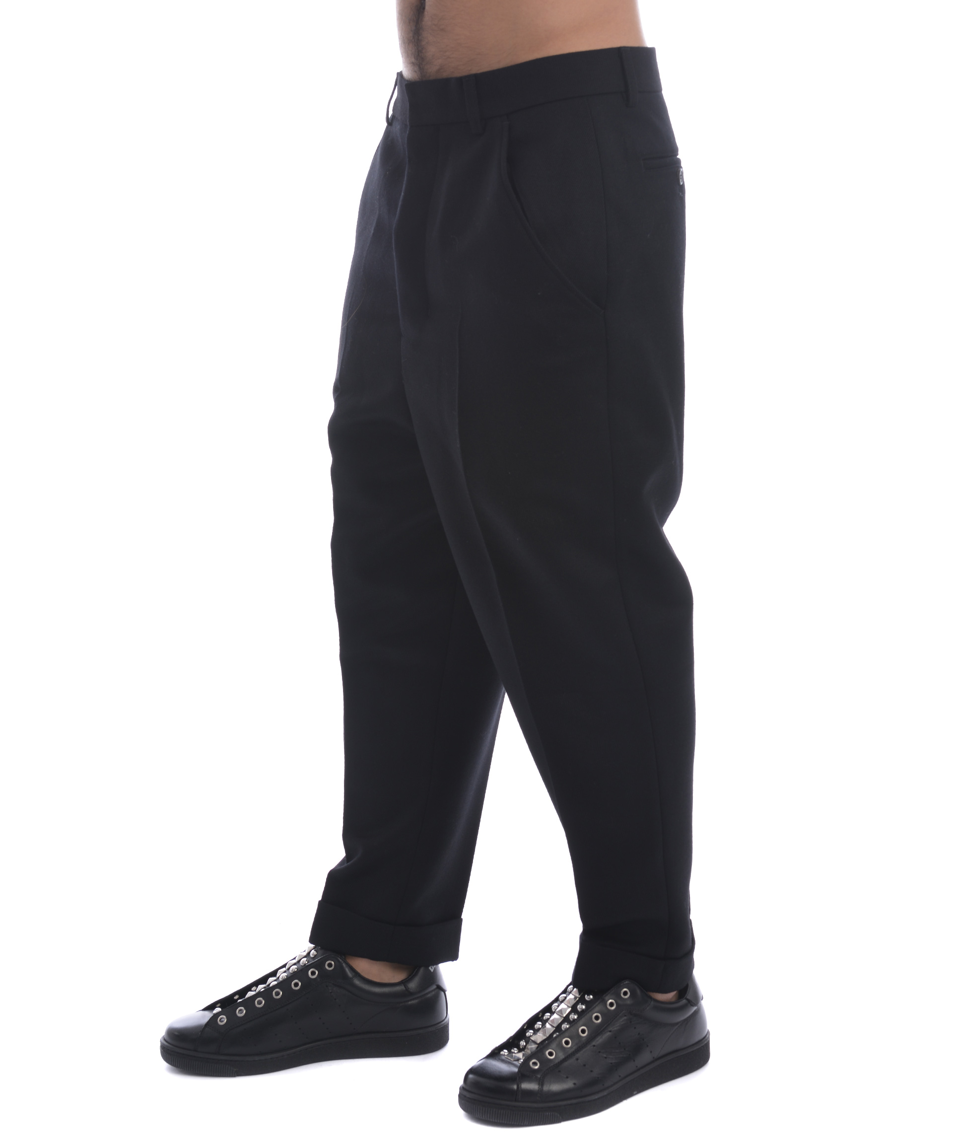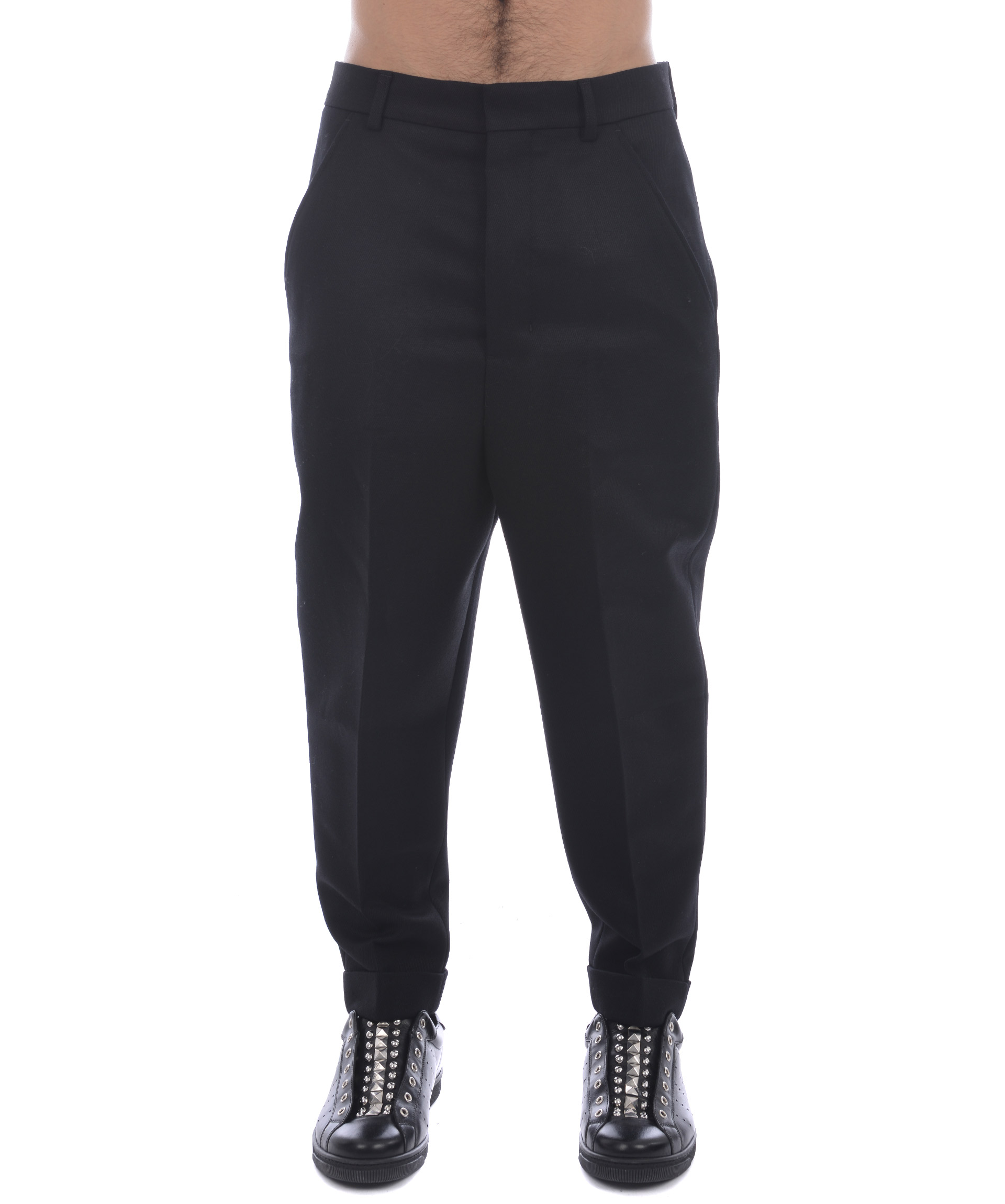 Pantaloni AMI Alexandre Mattiussi in twill di lana Nero. Tasche frontali diagonali. Tasche posteriori a filo con bottone. Chiusura con bottoni. Risvolto cucito al fondo. Cavallo basso. Misura in foto 38 (francese) 100% lana