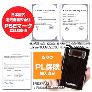 PSE法に許可を得て、PSEマークを付けて販売している技術基準に適合した高品質のバッテリー。PL保険にも加入済みなので、使用により使用者や財物に重大な損害が生じるようなことがあった場合でも、賠償保証があるので安心して使用可能。