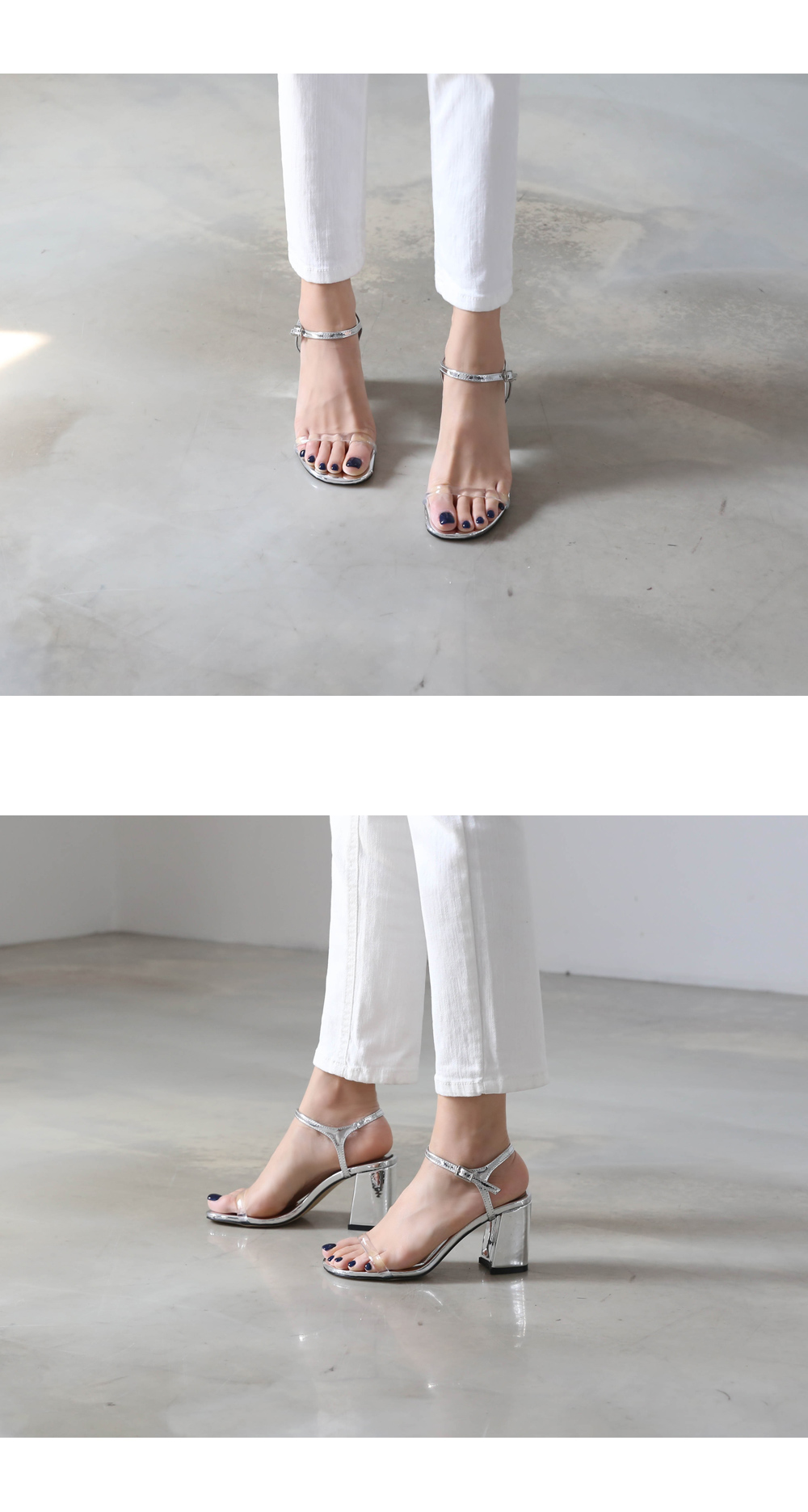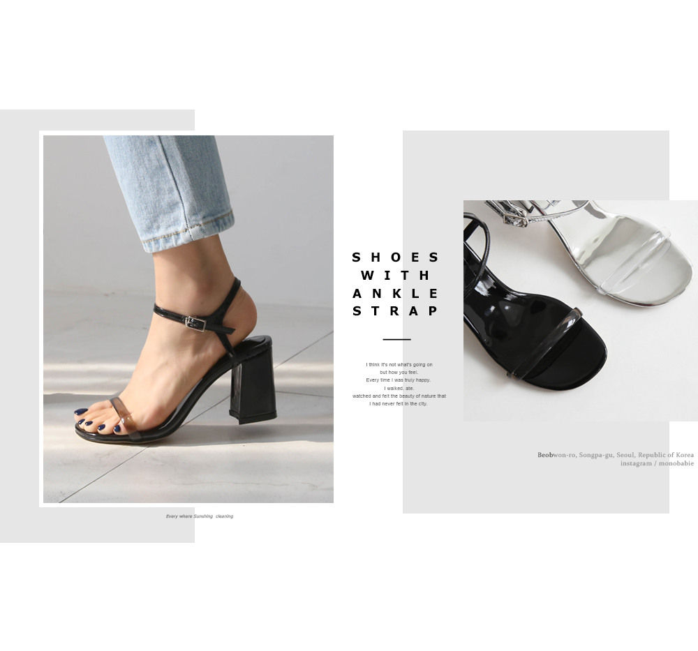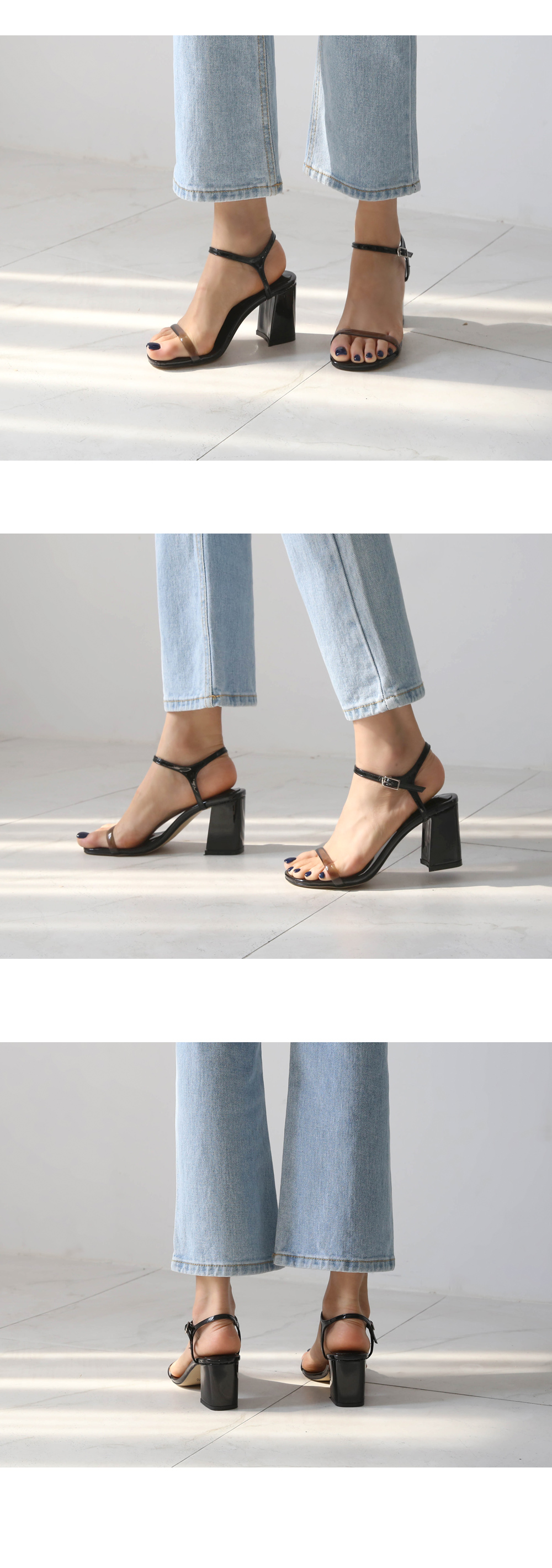 앞 PVC 스트랩은 발의 은은한 분위기를, 에나멜은 발의 고급진 분위기를 연출해줍니다.