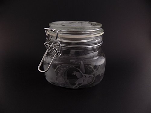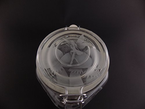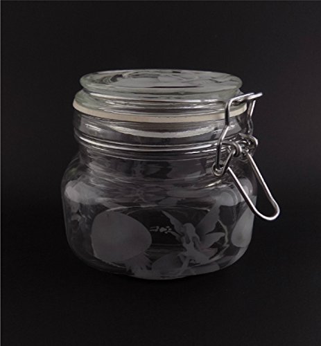Hand Etched Glass Jar Airtight Anchor Hocking Heremes Canister Sandblasted (Sand Carved) Handmade Engraved Locking Wire Clamp Lid (16 Ounce, Fairy Mushroom)