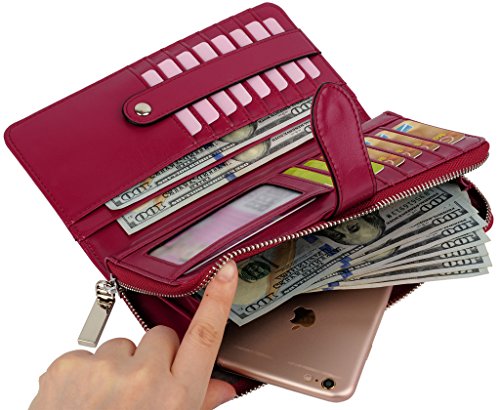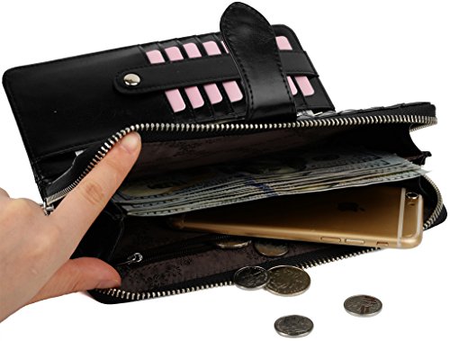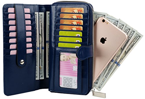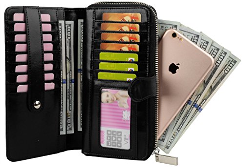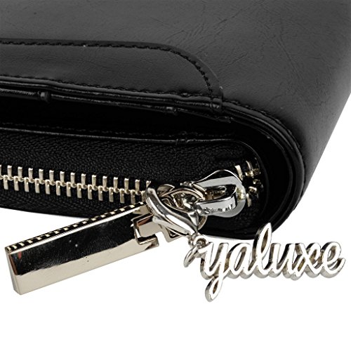-. Binding : Apparel -. Brand : YALUXE -. Department : womens -. Feature : Cowskin Split Leather(exterior) + Microfiber Leather(interior), this is a large capacity wristlet wallet for everyday use. / Sturdily constructed with Silver-tone hardware and fully lined with dark brown fabric. / 15 Card slots, 1 ID Window, 5 bill pockets and 1 zipped coin pocket.Fit up to IPHONE 6s Plus / Samsung Galaxy S4/S5/S6. / Zipper-Around design and a wrist strap is made to keep your property safe. / Dimensions: 7.87"L x 4.05"W x 1.18"H .The Weight is 0.52 pounds. -. ProductGroup : Apparel -. ProductTypeName : ACCESSORY -. Size : Large -. Title : YALUXE Women's Large Capacity Zipper-Around Leather Wristlet Wallet