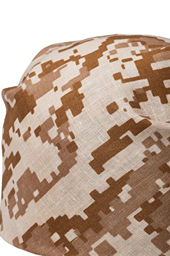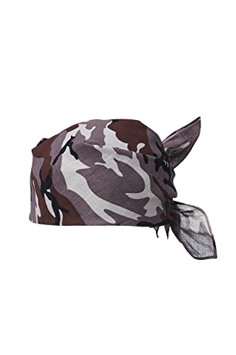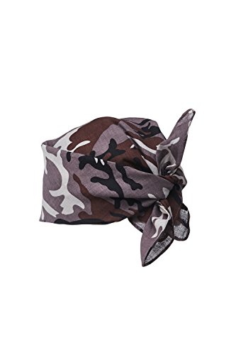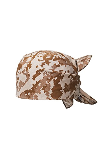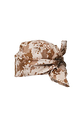 Binding : Apparel Product Description Yes, you're in the army now. In the army of fashionistas who like wearing camo. Add a trendy military twist to your casual look with our camouflage printed bandanas. They are really comfy and cool, just perfect to protect your head, neck or face from dust, wind and UV rays. HIGHLIGHTS ? 100% cotton fabric that delivers the greatest comfort. It is soft, highly absorbent and breathable which makes your bandana ideal headwear for summertime, active lifestyle or workouts. ? All four edges are neatly hemmed. ? Classic square shape and ample size provide multiple ways to wear your headpiece. ? Machine washable. To keep your bandana looking like new one, machine wash it with like colors at 86º F / 30º C or colder. WEAR TIPS ? Traditional wrap. Fold your bandana in half to make a triangle, place the center part at the forehead and tie the ends at the back of your head. Tuck the pointed end into or under the knot. ? Headband (Axl Rose style). Fold the bandana into a triangle. Roll it into a strip starting from the widest part. Wrap around the forehead and knot in the back. ? Choker. Pinch the end of bandana and roll it diagonally, until you reach the end of the material. Tie the strip around your neck. ? Desperado neckerchief. Fold the bandana into a triangle. Wrap around the neck and knot in the back. ? Bracelet. Fold the bandana into a triangle. Roll it into a strip starting from the widest part. Wrap around your wrist and tie the ends. You can use such a bracelet for mopping your brow. ? Face mask. The bandana can serve as a mask to protect your face from wind and dust while you are enjoying biking or motorcycle riding, 0