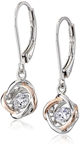 Rhodium and Rose Gold Plated Sterling Silver "Dancing" Cubic Zirconia 4mm Dangle Earrings