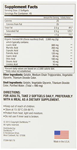 Diet Works Coconut Oil Softgels, 90 Count