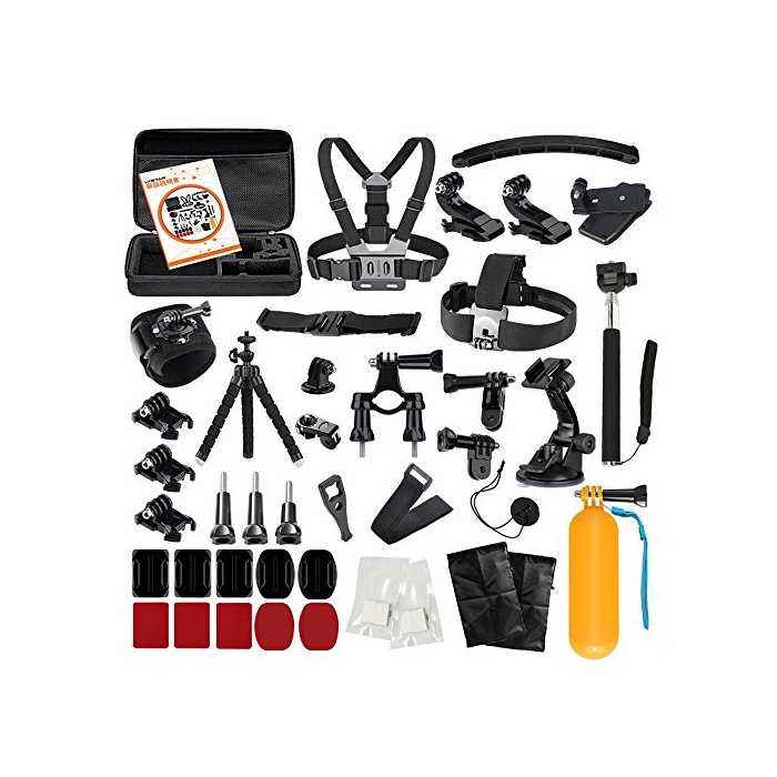 LyStar 51-in-1 Gopro 악세사리 세트 액션 카메라 촬영용 파트 일본어 취급 설명서 첨부속 for Gopro Hero 6/5/4/3+/3/2 Black Silver S
