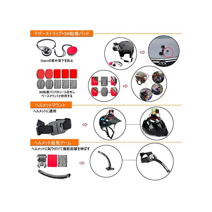 원본상품명: LyStar 51-in-1 Gopro アクセサリ セット アクションカメラ撮影用パツ 日本語取付 for Gopro Hero 6/5/4/3+/3/2 Black Silver Sess
