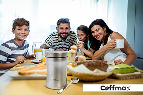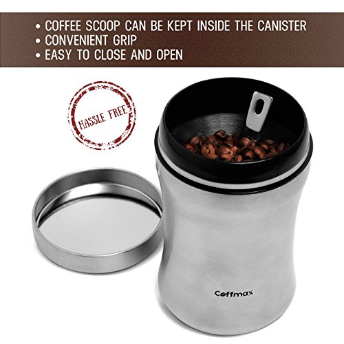 ➤ HANDY AIRTIGHT COFFEE STORAGE ➤ Convenient grip, easy to open and close sealed coffee keeper ➤ Specially suits those who want their aromatic coffee first thing in the morning and don't want to deal with locks and bags ➤ Coffmax coffee jar with spoon is suitable for small hands and easy to use