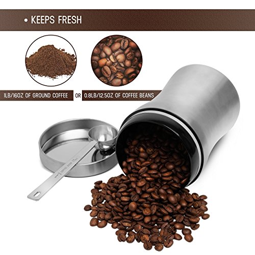 ➤ STORE COFFEE WITH STYLE: Polished stainless steel and elegant shape will add good looks to any counter and makes this cute metal coffee can a great gift to beloved ones