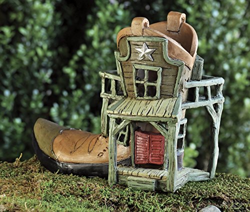 - A durable polyresin boot house with a balcony of its own for fairies to sit out and sun themselves