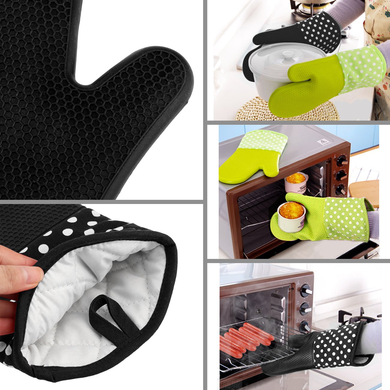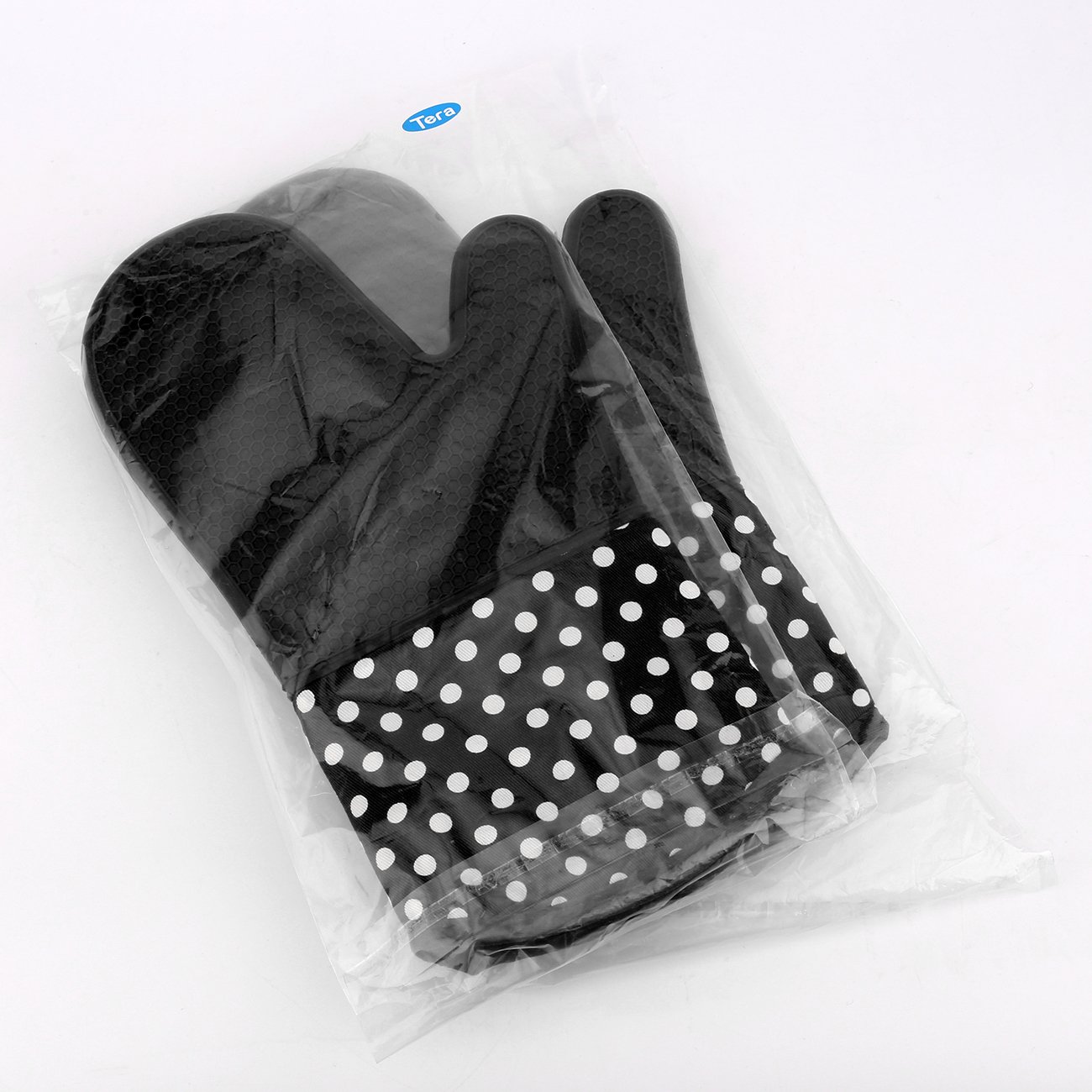 TeraR heat-resistant silicon oven mitt gloves microwave oven barbecue BBQ cooking kitchen glove set of two one-size-fits-all