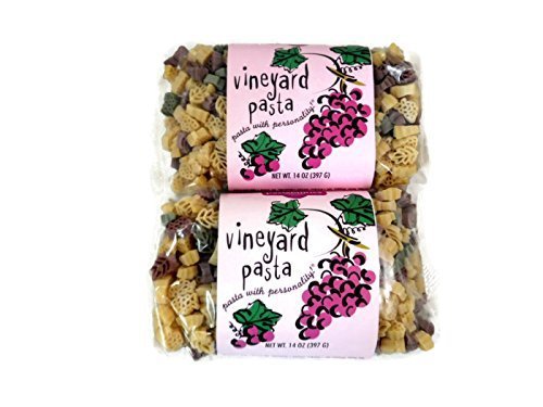 -. Feature : Each package has a combination of unique Grape and Leaf shaped pasta / Three natural colors made from all natural vegetable powders / 2 - 14 ounce packages. 6-8 Servings per package / Recipe included on back of package / Contains Wheat and Egg