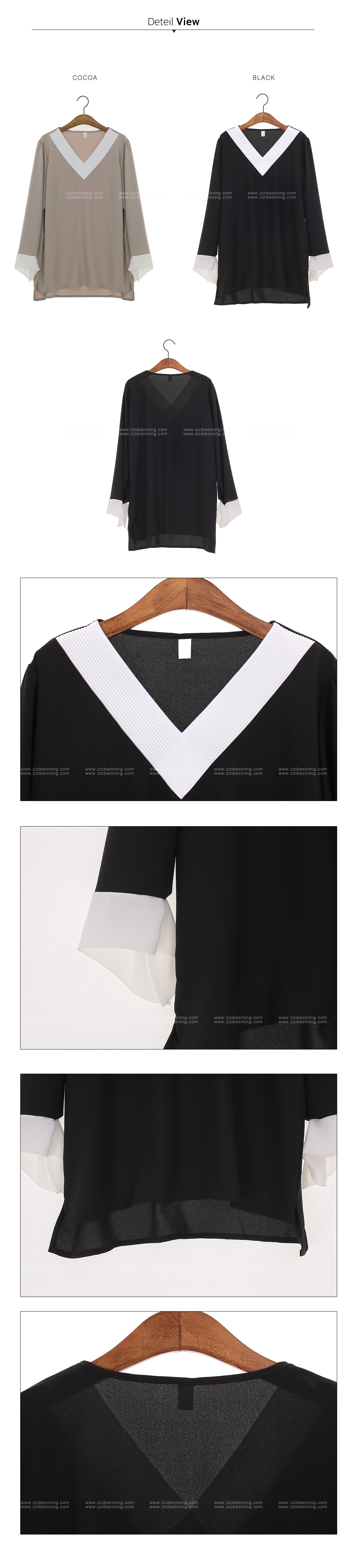 세련된 느낌이 전해지는 배색 블라우스에요.