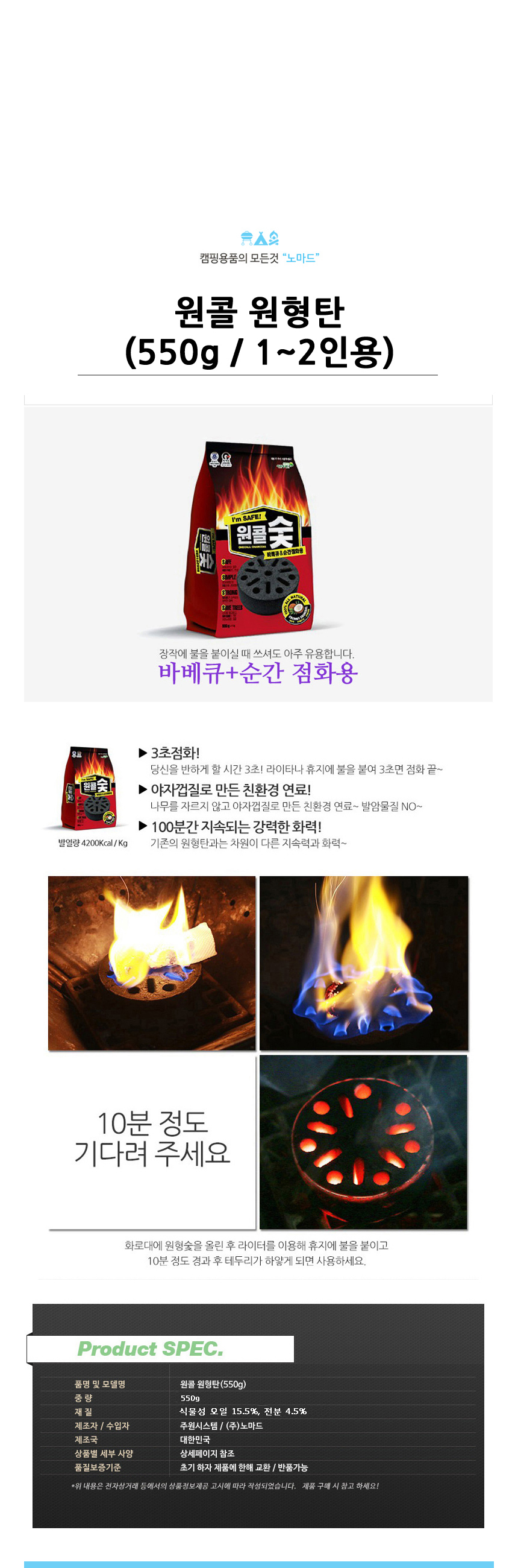 • 품명 원콜 야자숯 원형-550g RT-550F