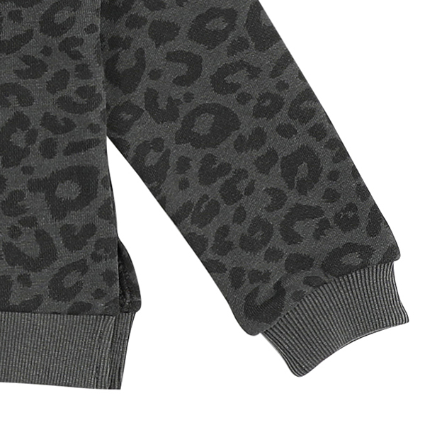 기본 핏의 맨투맨으로 톤앤톤 칼라의 그레이 호피원단으로 구성되어 있는 아이템입니다.