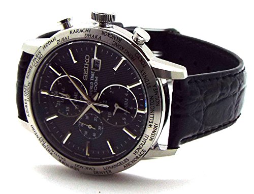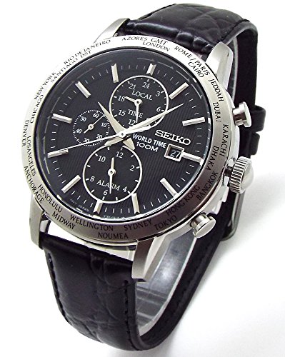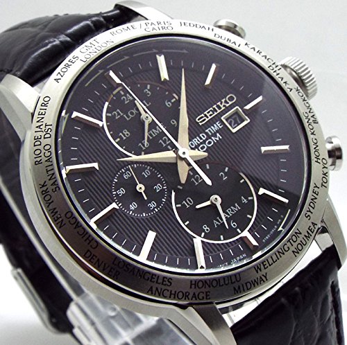 원본상품명: SEIKO アラ?ムクロノグラフ ワ?ルドタイム 100m防水 腕時計 本革ベルトセット ??セイコ?正規流通品 ブラックダイヤル SPL049PC [?行輸入品]