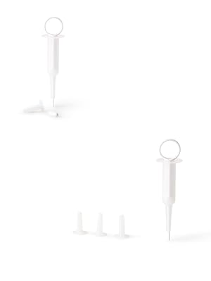 先端が開いていないヘッド2個、液体・液状の薬用(ペットの需要で調節できる)