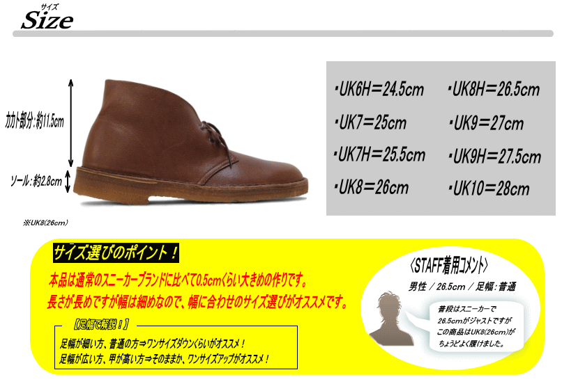 | 商品説明 | <BRAND STORY> 1825年イングランド南西部の小さな町、ストリートにてサイラスとジェームスというクラーク兄弟によって、設立されたのが「クラークス」。砂漠用の靴をヒントに考案したデザートブーツをはじめ,ワラビーやデザートトレックなどを発表。今や世界クラスの認知度と人気を誇るカジュアルシューズのトップブランドです。 <ITEM INFO> ・クラークスの定番コンフォートシューズ「デザートブーツ」。 ・天然皮革のオシャレなショートブーツです。 ・天然ゴム仕様のソールなので、柔らかく履き心地抜群♪ ・シンプルなデザインで、カジュアルからフォーマルまで幅広く愛用していただけます。 |