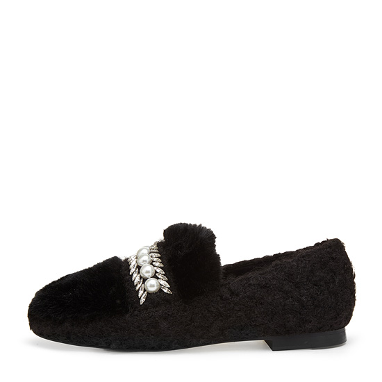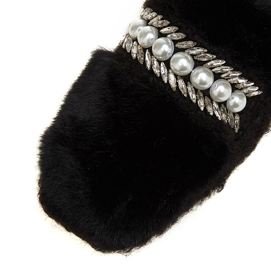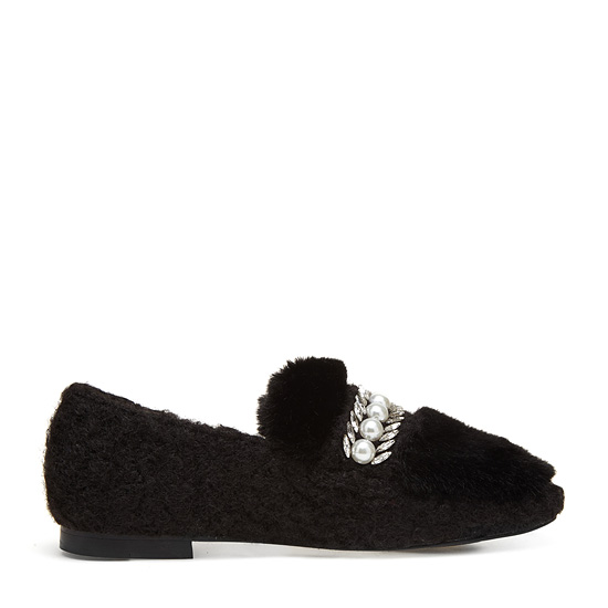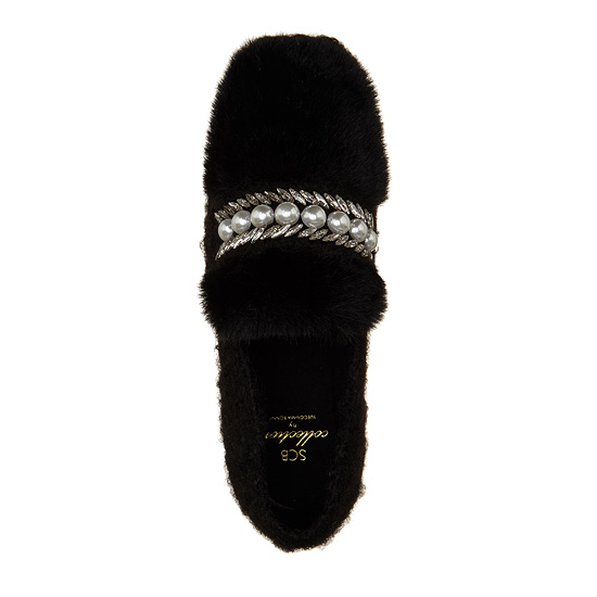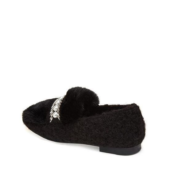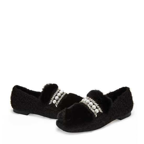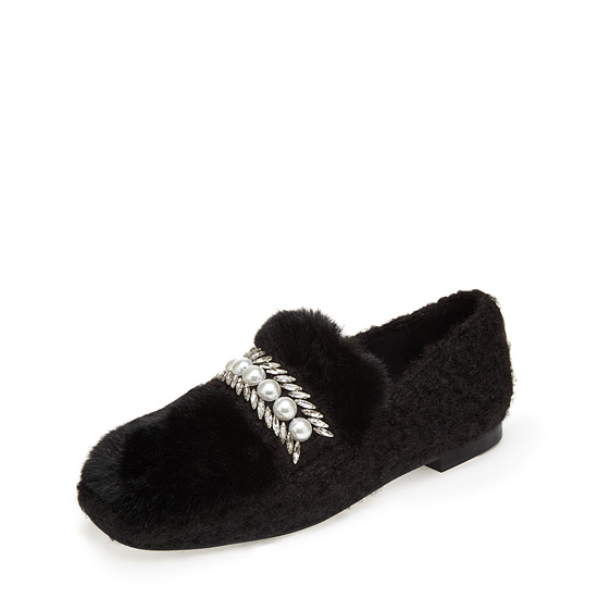 - 페이크 퍼와 덤블링 소재를 믹스해 시그니처 장식을 사용한 로퍼.