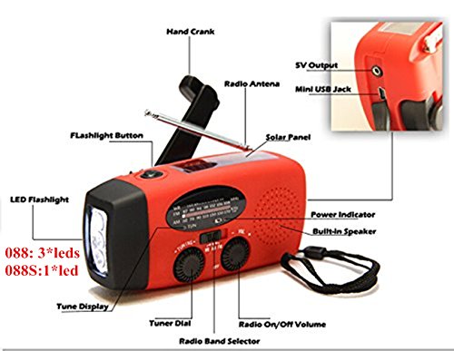 - Feature : 1. Cover iRonsnow IS-088 functions. Enhence the capacity from 350mAH (IS-088) to 1000mAh (IS-088+), enhence the LED flashlight power from 3 * 0.05W/6 Lumen (IS-088) to 1W/50 Lumen (IS- 088+). Protect your safety well when emergent event (cyclone/typhoon, ect) happen / 2. Compact digital AM/FM/NOAA/WB Weather Radio + 1W flashlight + 1000mAh power bank / 3. 3 ways to charge: micro usb/hand crank/solar / 4. Very compact, light, and easy to carry. Dimensions: 5" x 2.4" x 1.6" .Weight: less than 0.5lbs / 5. Good signal to receive NOAA/WB Weather Radio