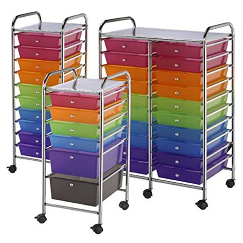 - Feature : Several size options available / Multi-colored drawers / Chrome-finished metal frame and drawer pulls / Interlocking rail and drawer system / Molded drawer stops
