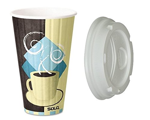 SOLO Cup Company Duo Shield Hot Insulated 12 oz Paper Cups, Beige (50 Cups+ Lids)
