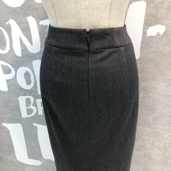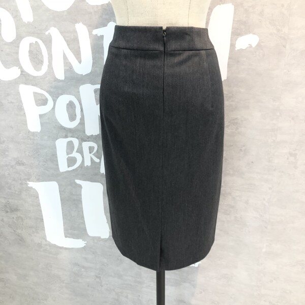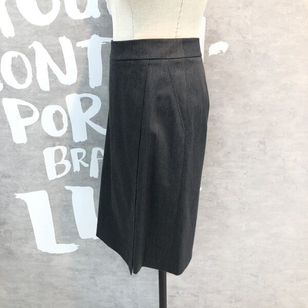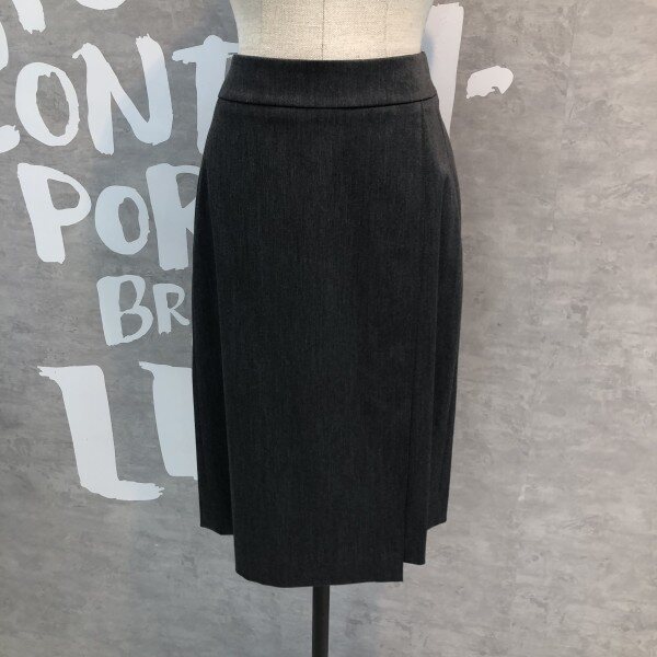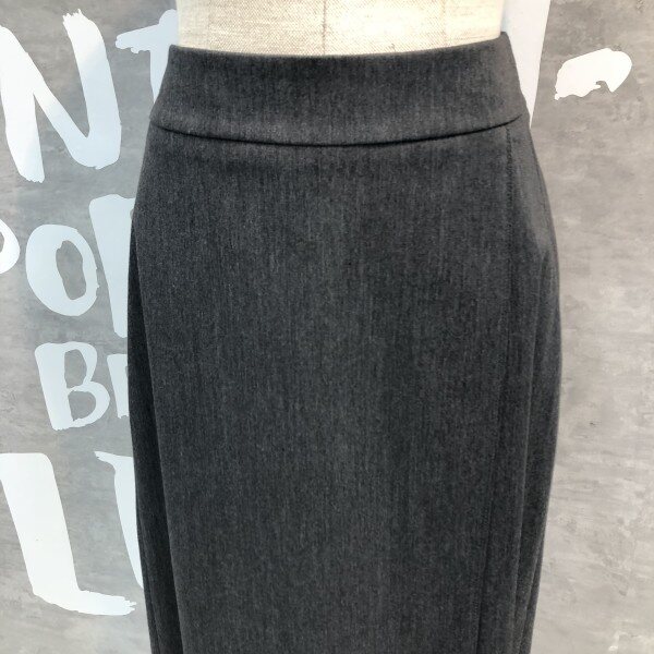 미니멀한 실루엣에 프론트 랩라이크 디자인이 페미닌한 미디 기장의 포멀 스커트입니다