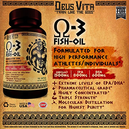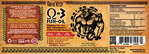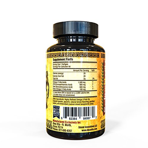 Top Omega 3 Fish Oil | by Deus Vita | Pills High in Fatty Acids | Most Beneficial Supplement of EPA/DHA Per Serving | (Bottle, 90 Count) | Best Value