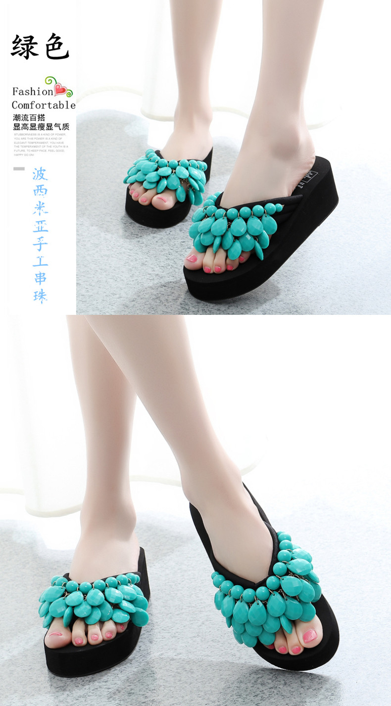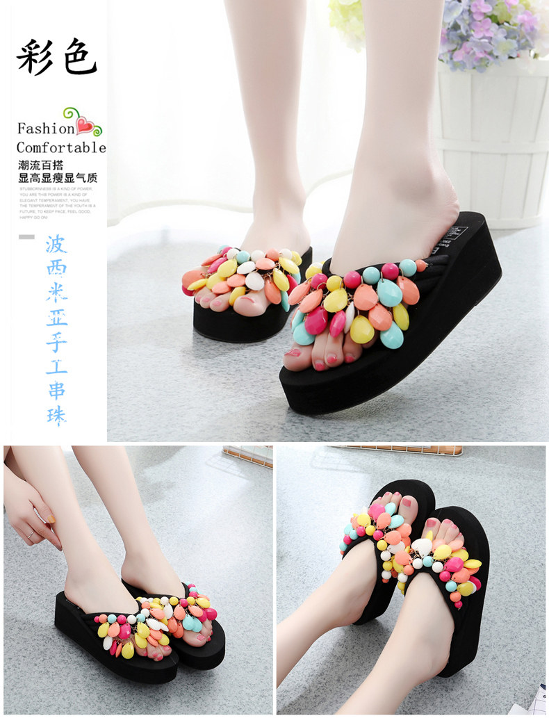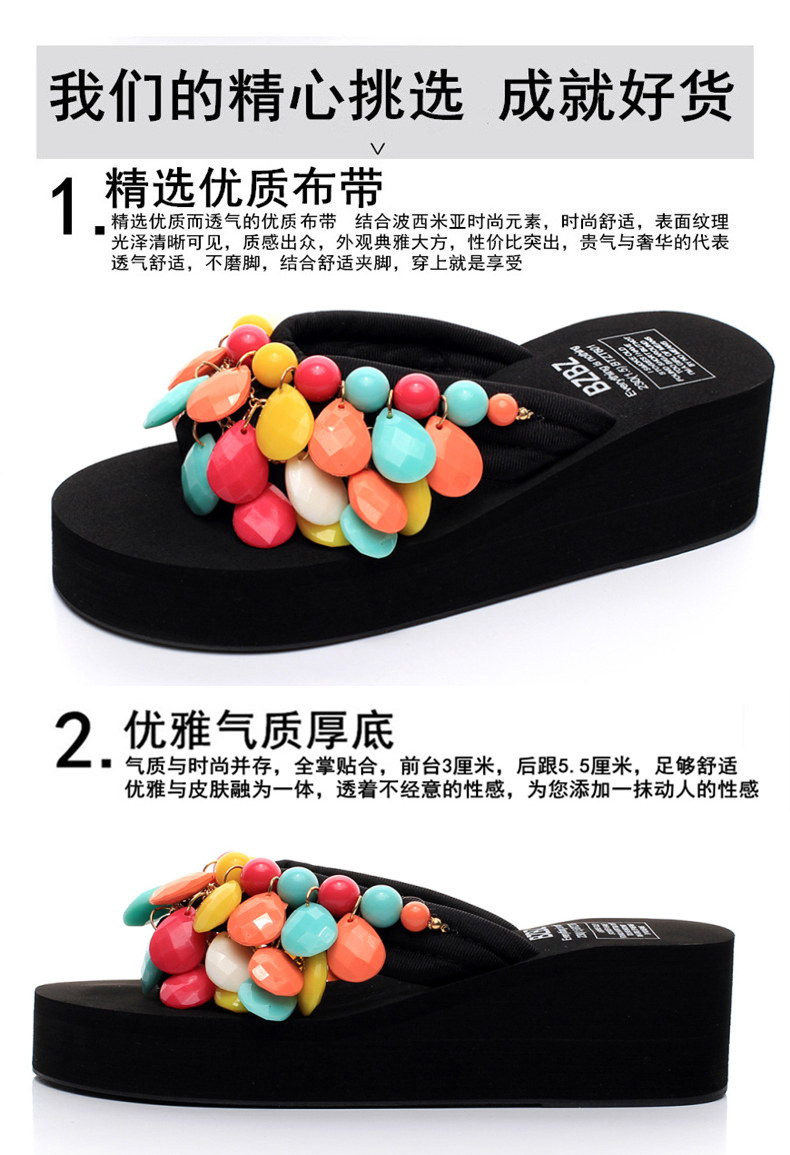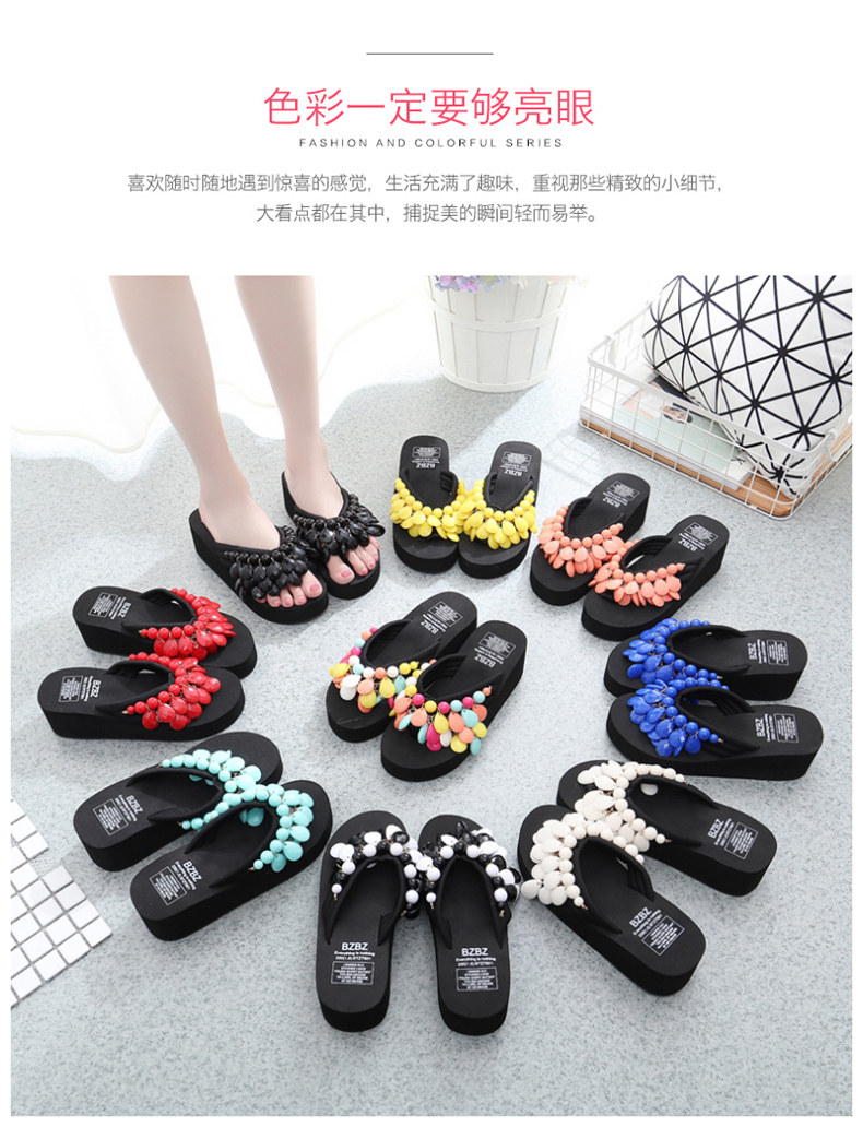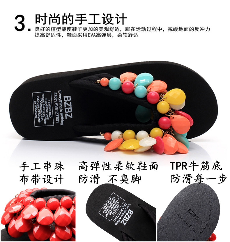 手工串珠沙滩鞋女夏坡跟人字拖时尚防滑厚底凉拖鞋韩版民族风