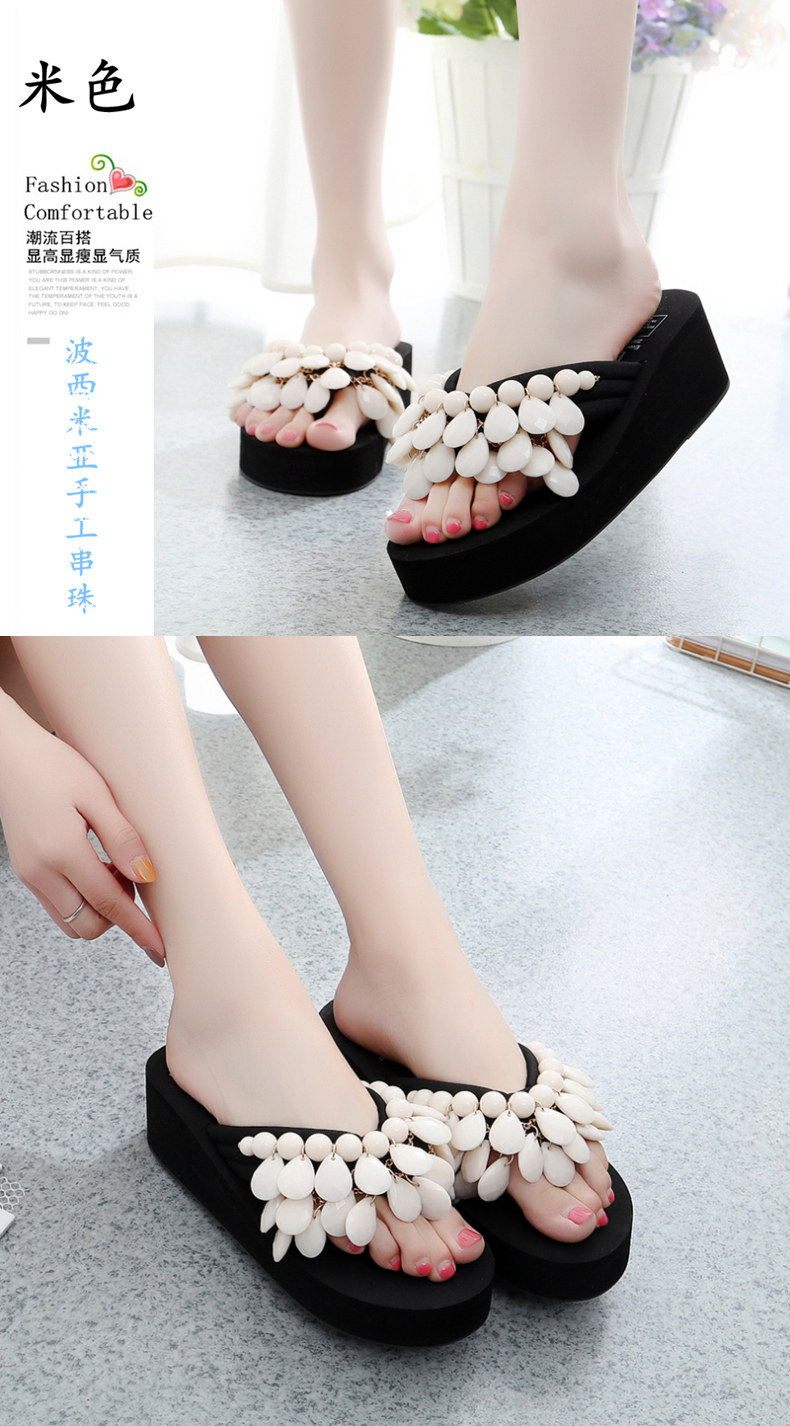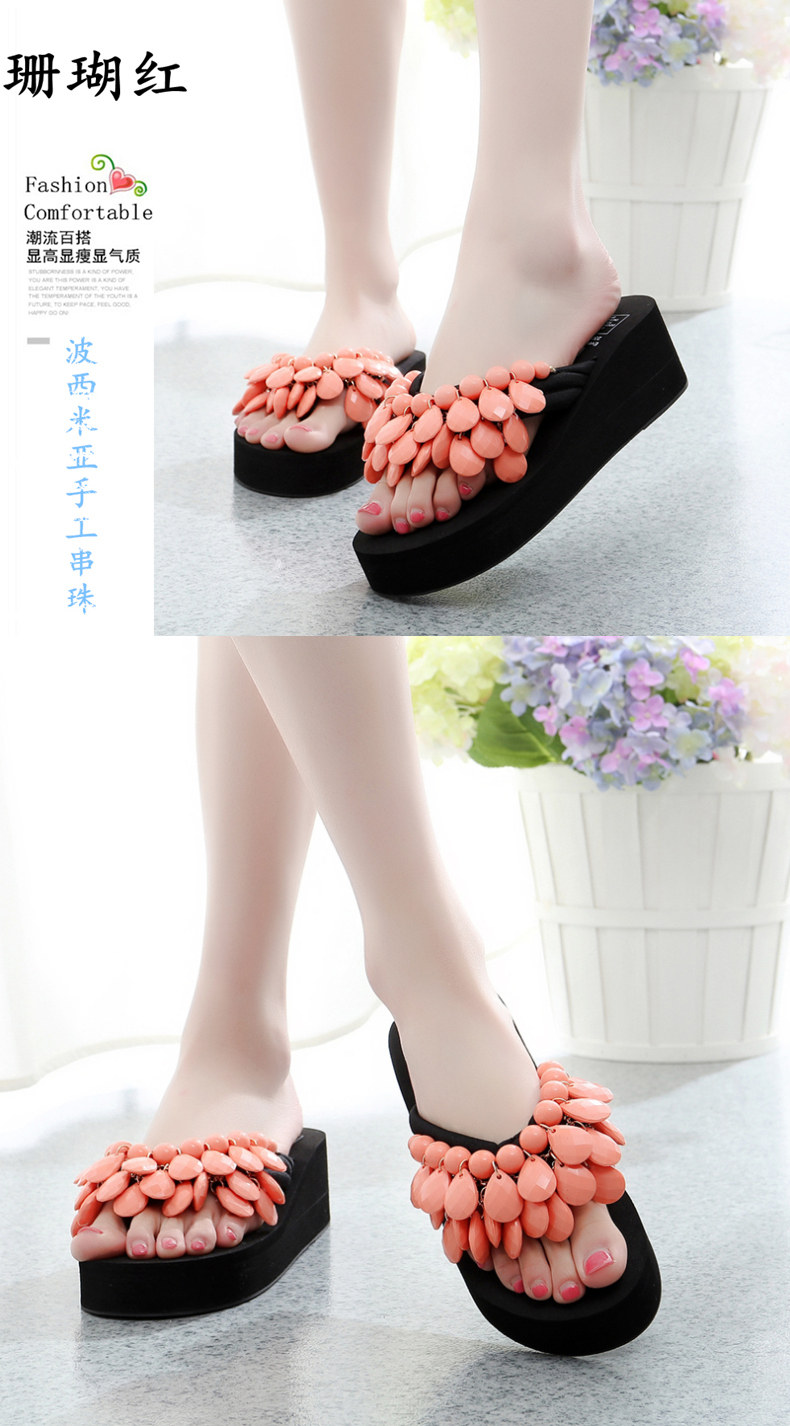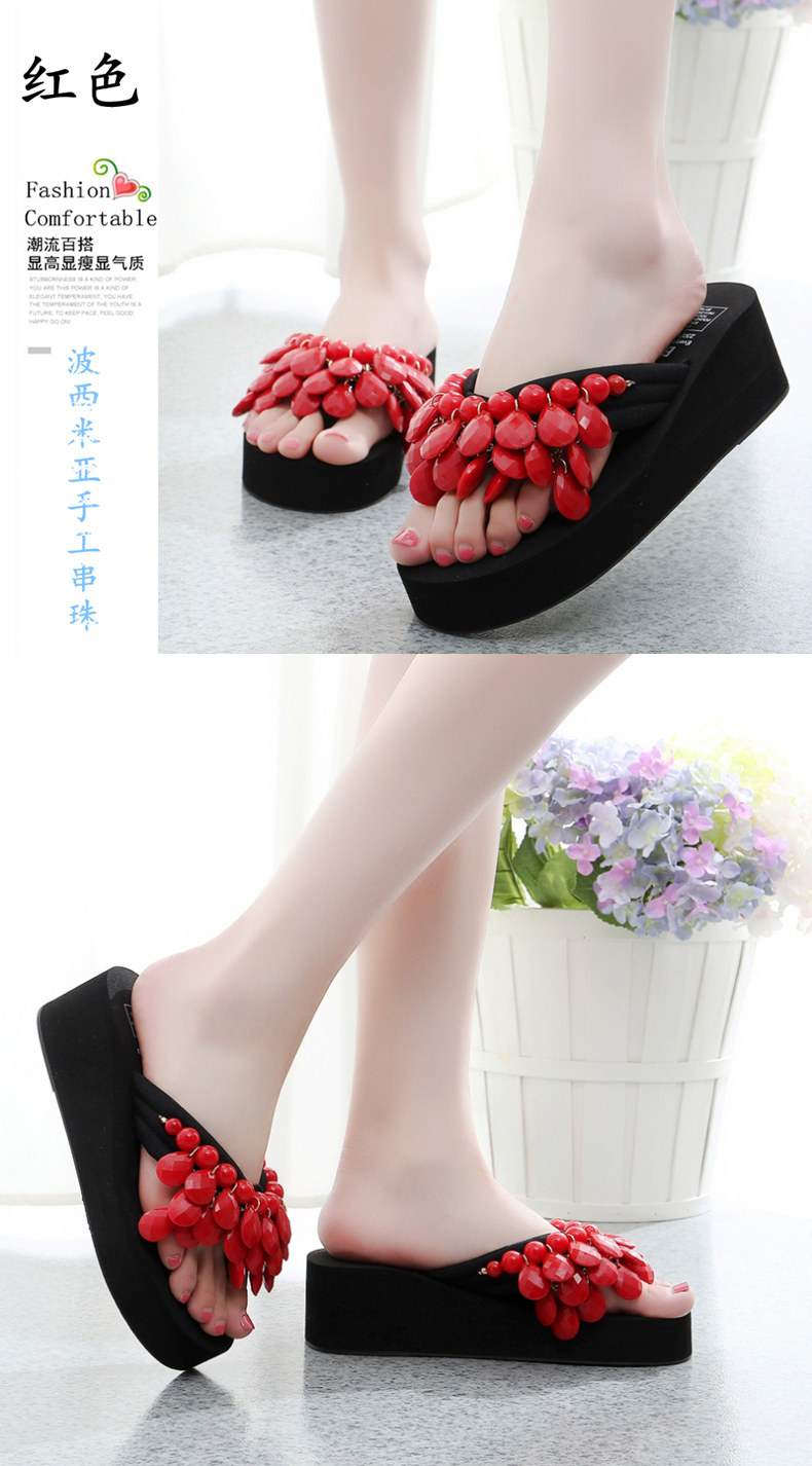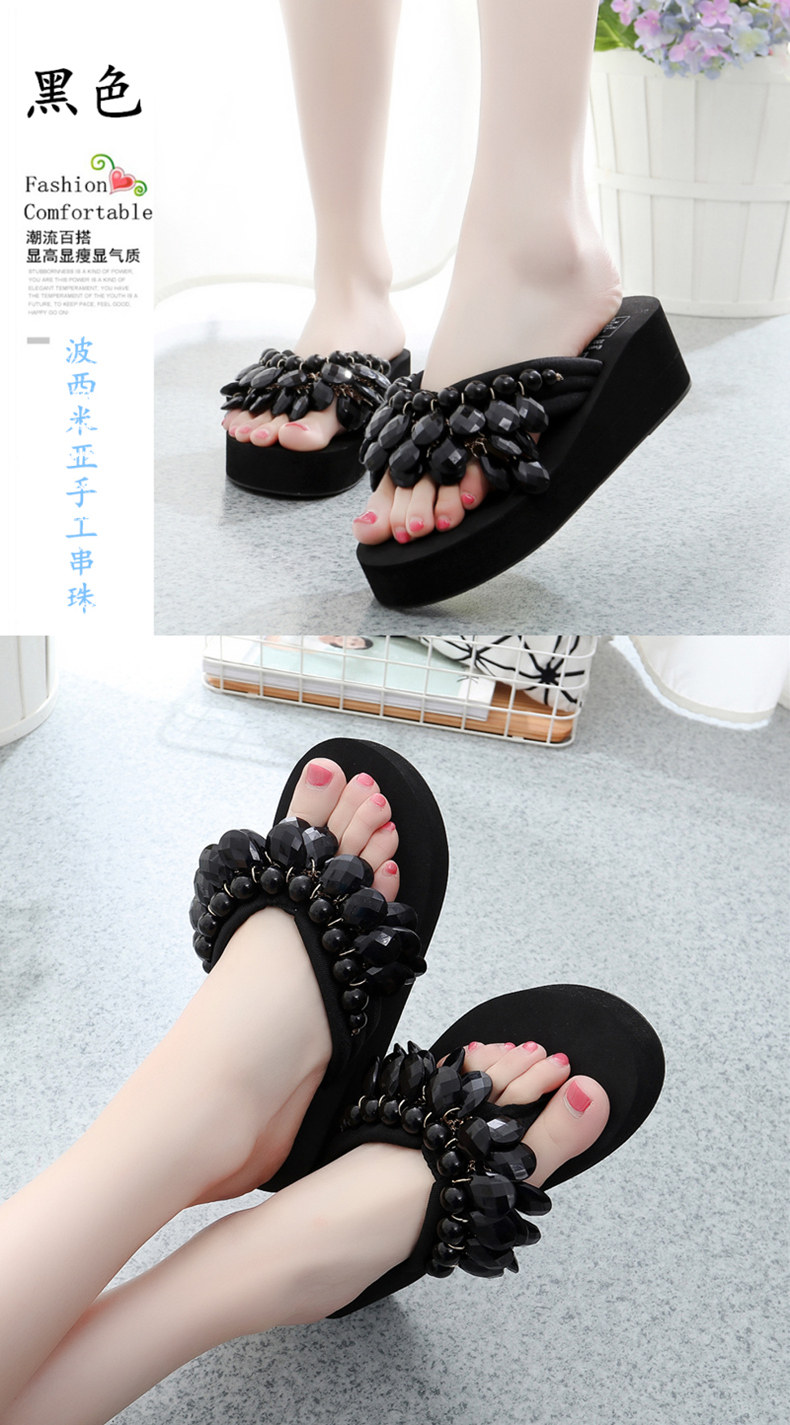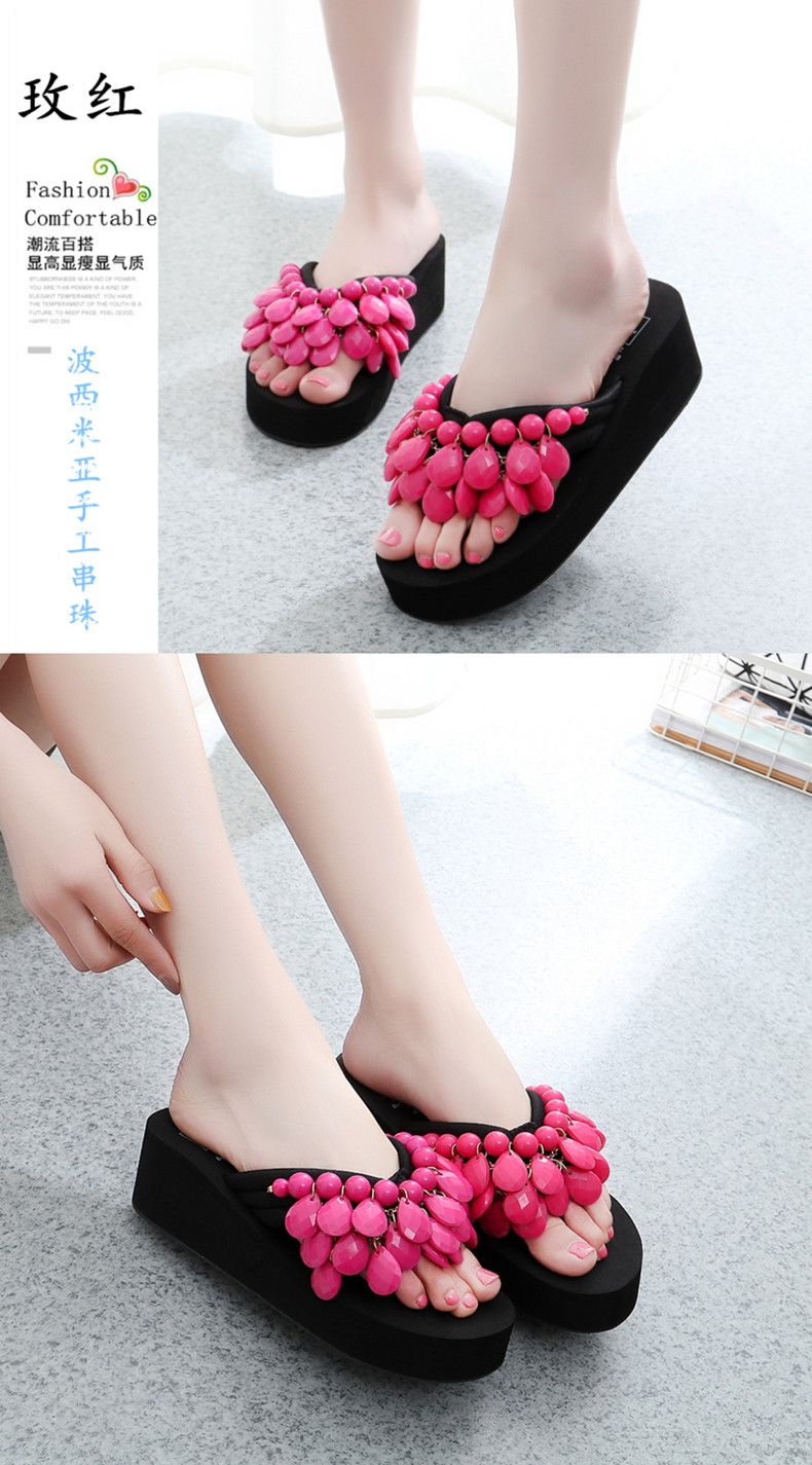 手工串珠沙滩鞋女夏坡跟人字拖时尚防滑厚底凉拖鞋韩版民族风