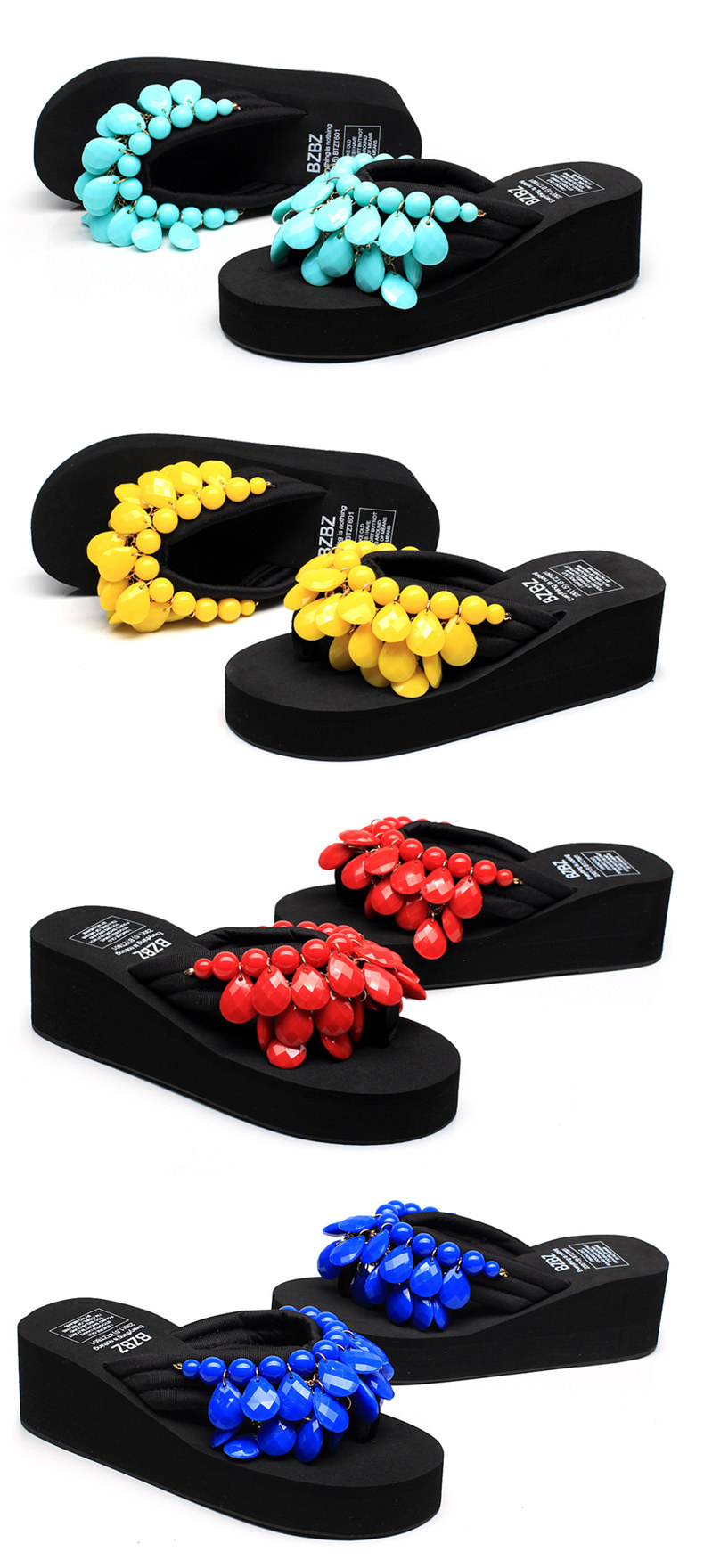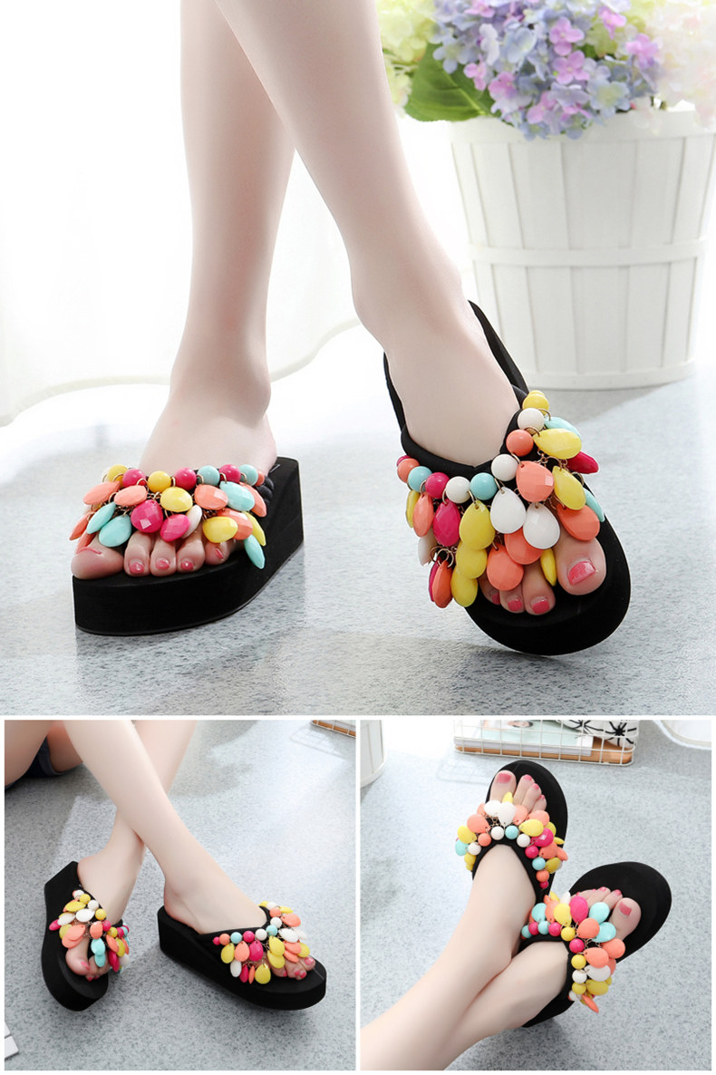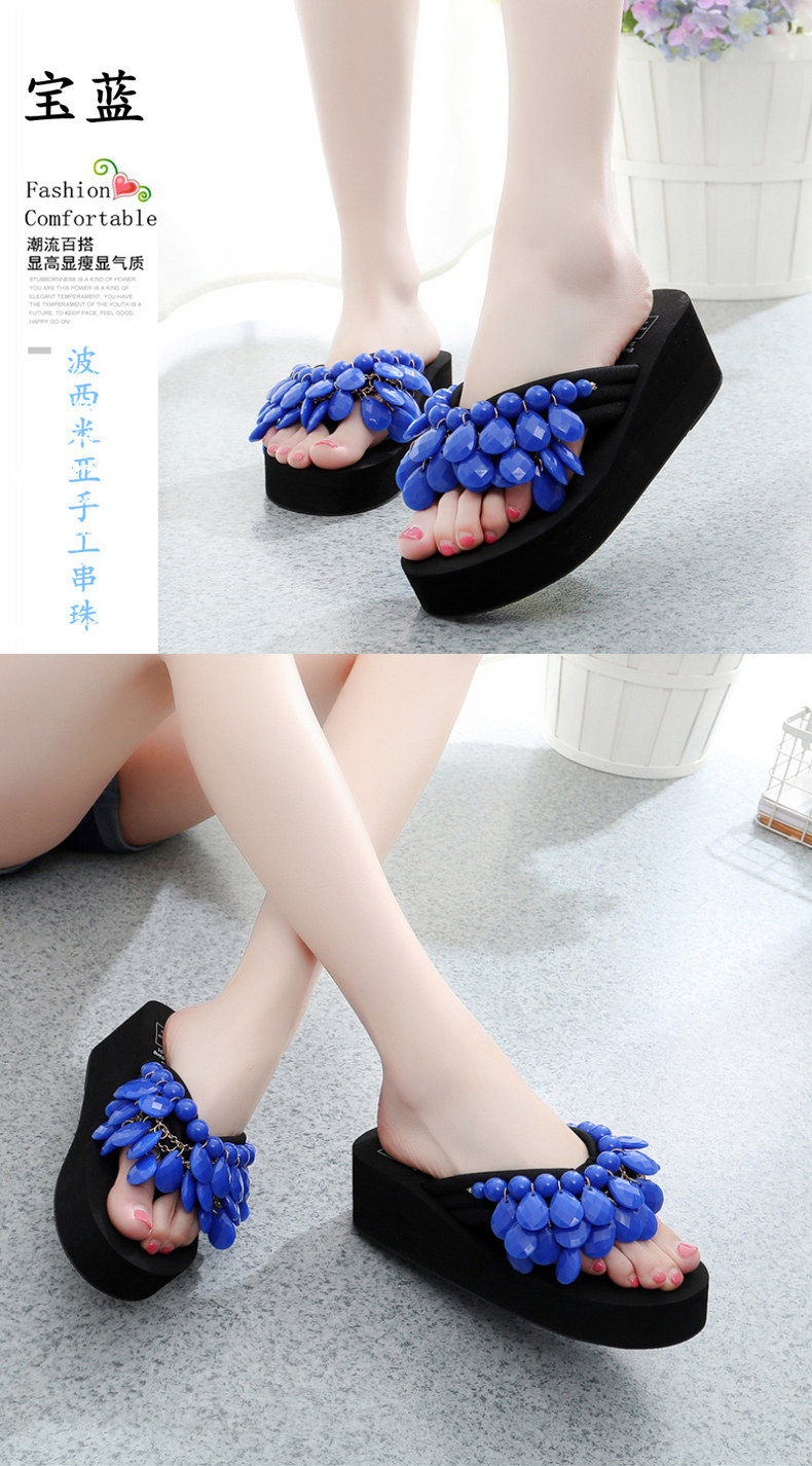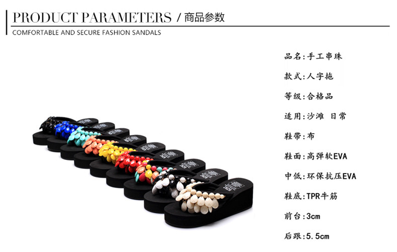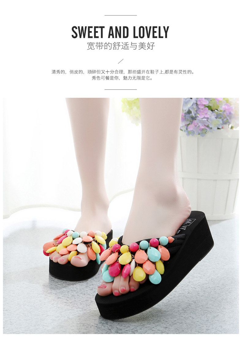 手工串珠沙滩鞋女夏坡跟人字拖时尚防滑厚底凉拖鞋韩版民族风
