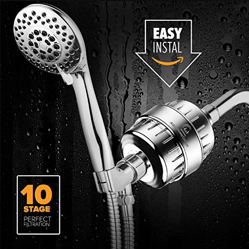 10-Stage Shower Water Filter - 2 Cartridge Included - Removes Chlorine, Impurities & Unpleasant Odors - Boosts Skin and Hair Health - For Any Shower Head and Handheld Shower AquaHomeGroup