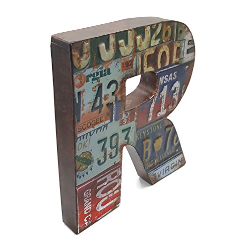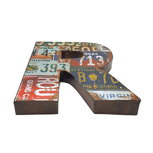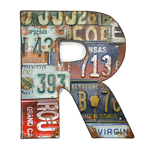 66Retro 13" Metal Letters R with license plate pattern and embossed Vintage Wall decoration Sign