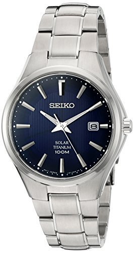 Seiko Men''s SNE381 Titanium Watch with Blue Dial