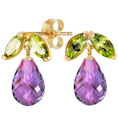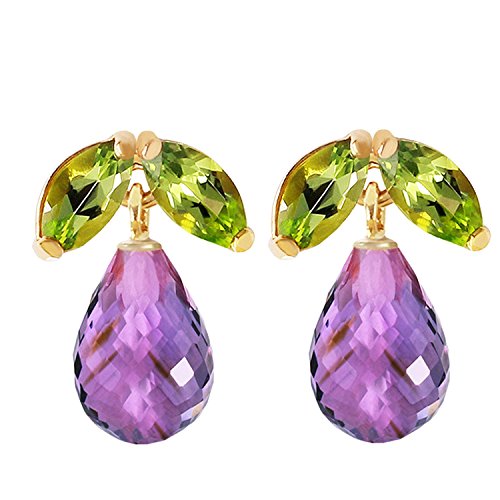 -. Title : 3.4 Carat 14k Solid Gold Stud Earrings with Natural Amethysts and Peridots