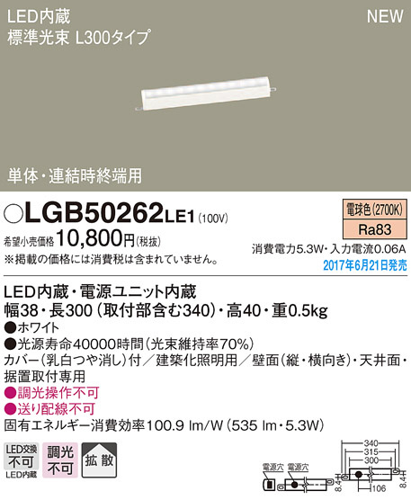 ●寸法(mm):幅38・長300(取付部含む340)・高40