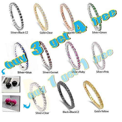 - Title : 925 Sterling Silver CZ Designer Inspired Stackable Eternity Band Rings (9, Rosegold + Clear)