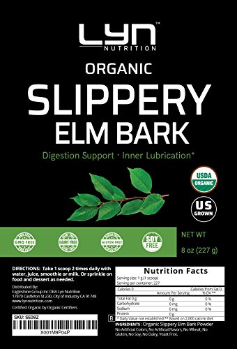 (Lyn Nutrition)/Vitamins Dietary Supplements/Herbal Supplements/DIRECT FROM USA/Pure Organic Slippery Elm Bark Powder, 8 Ounce, Premium Quality, Non-GMO, Sore Throat Relief