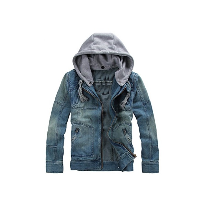 원본상품명: (アルファフプ) α-HOOP メンズジャケット フド あり ジップアップ パカ デニム ダメジ 加工 gジャン レザ ロック ジャケット 上 2 種類 カジュアル ストリト アウタ