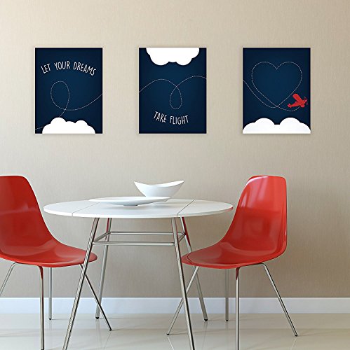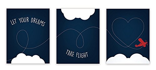 Nursery Decor, Let Your Dreams Take Flight Print 08x10 Inch Print in Blue, Red Plane, Wall Art Prints, Typography, Kid's Wall Art Print, Kid's Room Decor, Gender Neutral, Motivational, Baby Boy