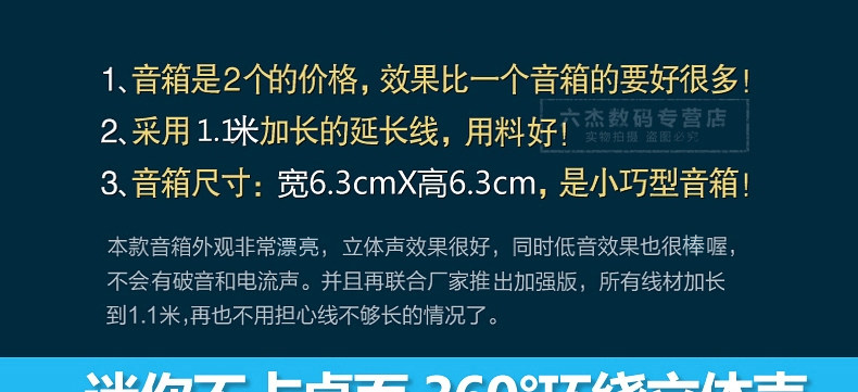 炫目 D100笔记本便携USB2.0多媒体音箱迷你台式电脑小音响低音炮