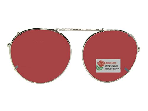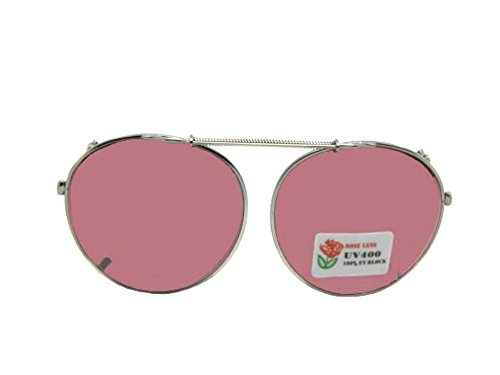 Product Description Semi round shape NON polarized rose lenses. Non polarized lenses make it easier to see your dashboard and electronic devices outside. For the semi round shape to fit your glasses, your glasses need to be a similar semi round shape with your frame rim measuring less than 3mm's thick. Please measure one lens of your glasses carefully to the outside rim of your glasses width x height. We have many different sizes available and only one will fit your glasses, so it is very important to measure your glasses correctly. The semi round needs to be nearly the same shape as your glasses and the size clip-on sunglass needs to be the same as the measurement of your glasses or the next size bigger. To help with sizing, we have printable templates for the semi round shape at Sunglass Rage but there isn't a way to upload the templates here so measuring your glasses carefully is very important. All of our sunglasses and clip-on's are rated UV400 protection which is up to 100% protection. We include a microfiber pouch to store and clean your lenses. Our supplier for the rose lens clip-on closed their business so this is the last of the inventory available. 0