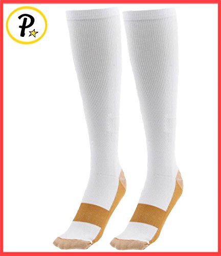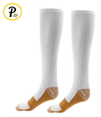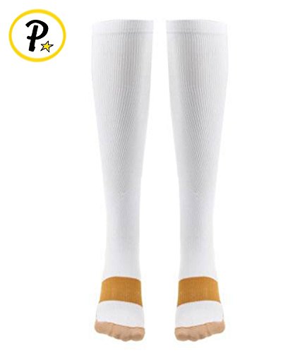 Presadee 15-20 mmHg White Copper Compression Increase Oxygen Circulation Anti-Fatigue Energy Socks (2XL)