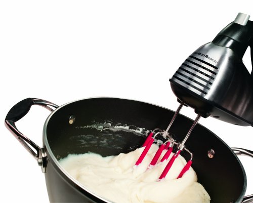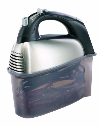 Feature : Snap-on translucent black storage case / SoftScrape attachments scrape bowl for mixing / 300 watt peak-power motor, quick burst button / Also includes metal beaters and bowl rest
