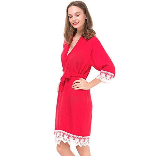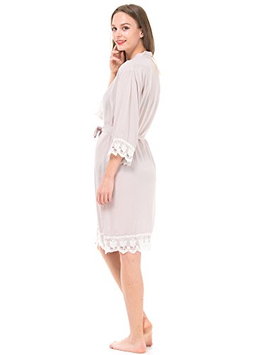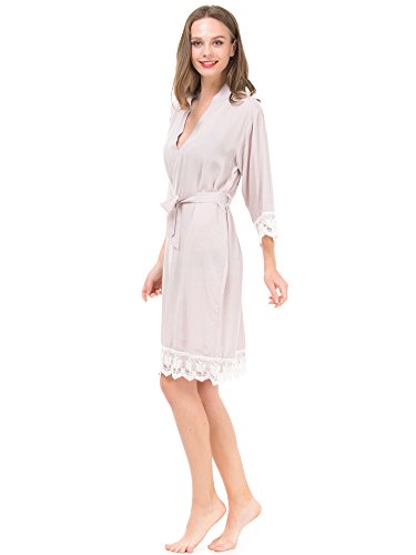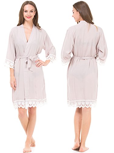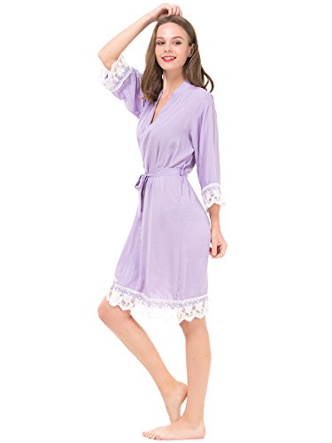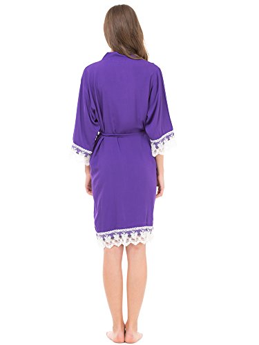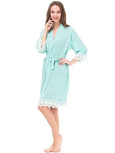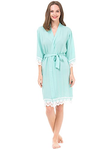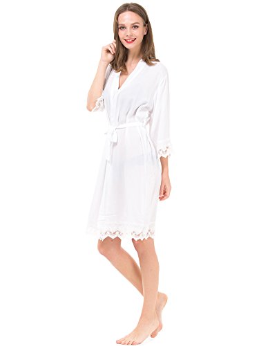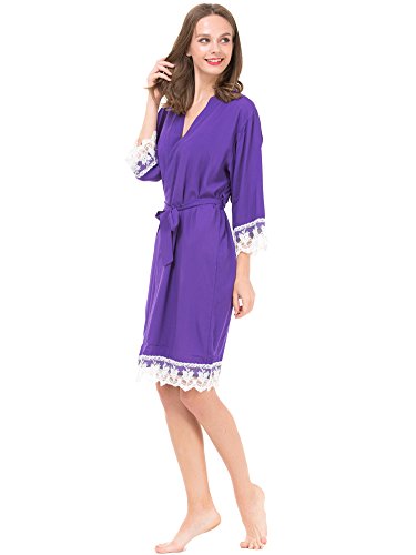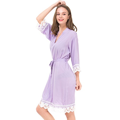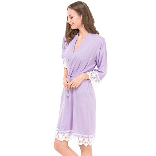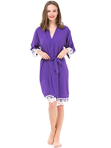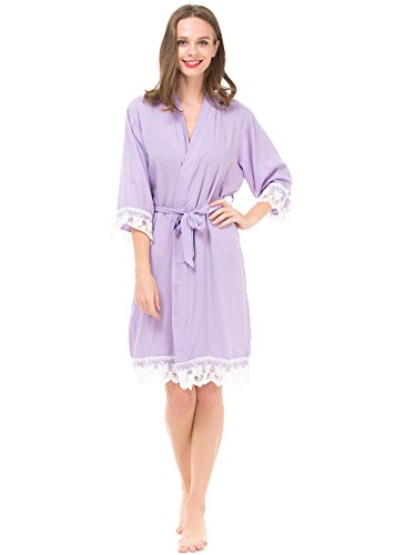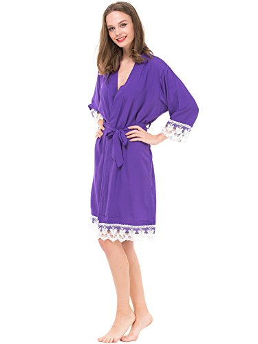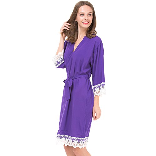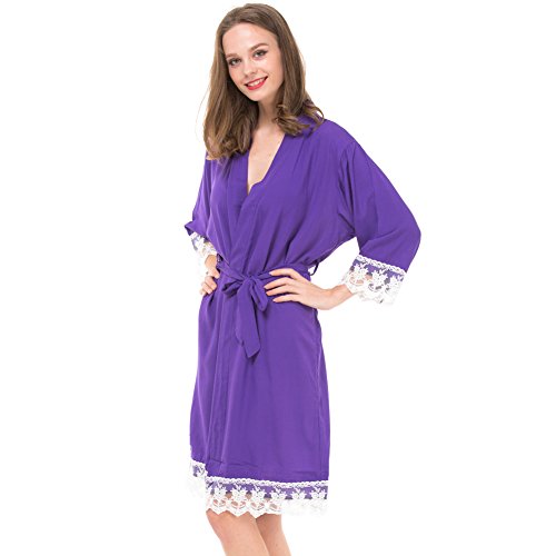 Women's Cotton Robe for bride and Bridesmaid Kimono with Lace Trim 3/5 Seelves Plus Size