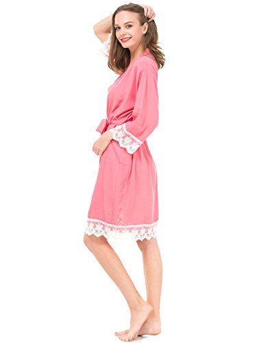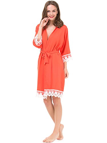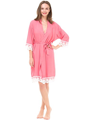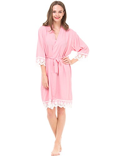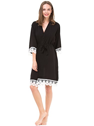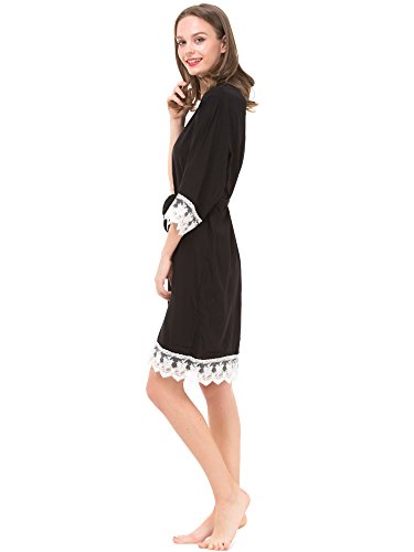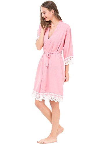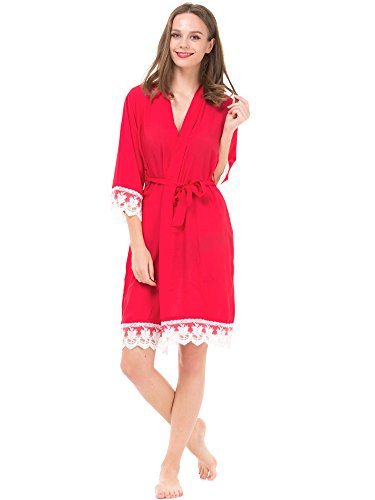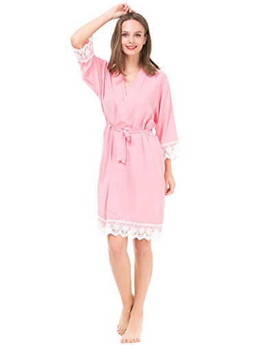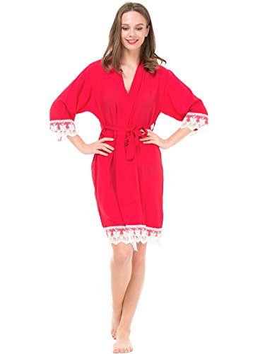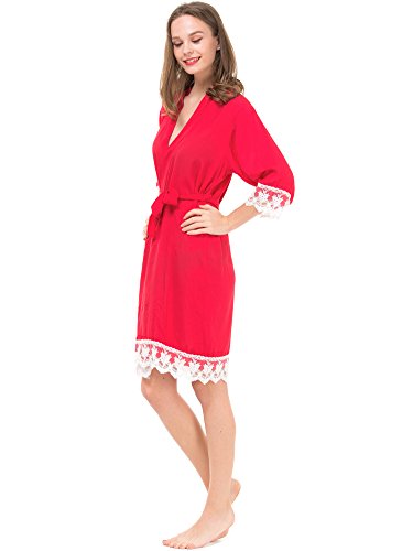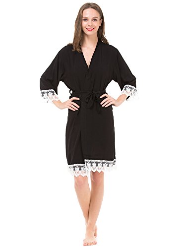 Women's Cotton Robe for bride and Bridesmaid Kimono with Lace Trim 3/9 Seelves Plus Size