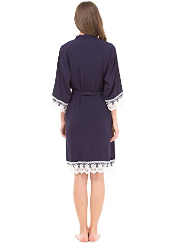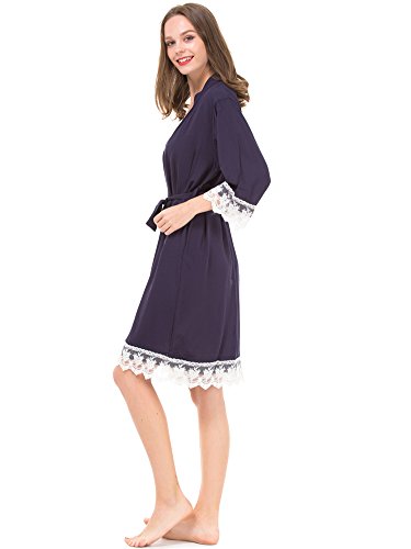 Mr & Mrs Right Women's Cotton Robe for bride and Bridesmaid with Lace Trim,Navy Blue,Large / 12-18